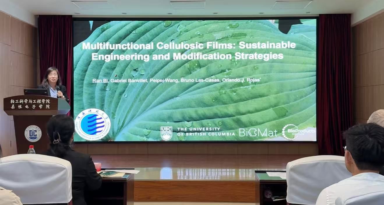 報告會上,Orlando J. Rojas教授介紹了源于木材與植物的生物基膠體所蘊(yùn)含的巨大潛力。探討了將低價值剩余木材轉(zhuǎn)化為有序結(jié)構(gòu)、3D打印等可用于合成全綠色材料的相關(guān)結(jié)構(gòu)所涉及的加工路線,并以實例說明此類材料在自然環(huán)境中的可回收性與生物降解性,從而回應(yīng)了非可再生產(chǎn)品在循環(huán)利用與壽命終結(jié)處理方面的局限,為可持續(xù)生物基材料替代不可再生碳產(chǎn)品的發(fā)展提供有效思路。