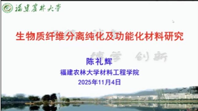 11月4日,應科技處、前沿院及輕工學院邀請,福建農林大學“農林剩余物纖維素功能材料”科技部創(chuàng)新團隊負責人陳禮輝教授做客我校“前沿科學報告”,作題為“生物質纖維分離提純及功能材料研究”的線上學術報告。輕工學院相關專業(yè)教師、研究生參加報告會。