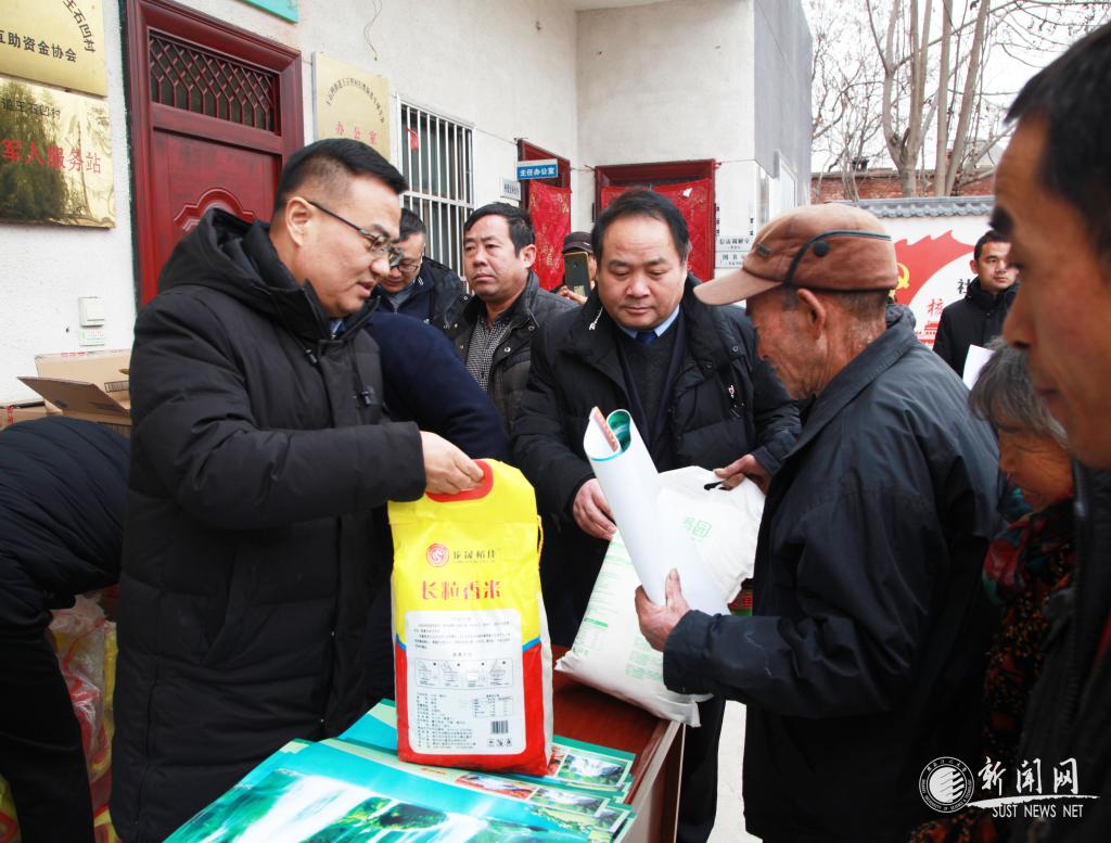 隨后,姚書志、楊欲曉代表學校為全村307戶鄉(xiāng)親們集中發(fā)放了包括一袋10斤大米、一袋20斤面粉、一桶5升食用油、新年掛歷等慰問品,并祝愿大家過上一個祥和愉快的春節(jié)。