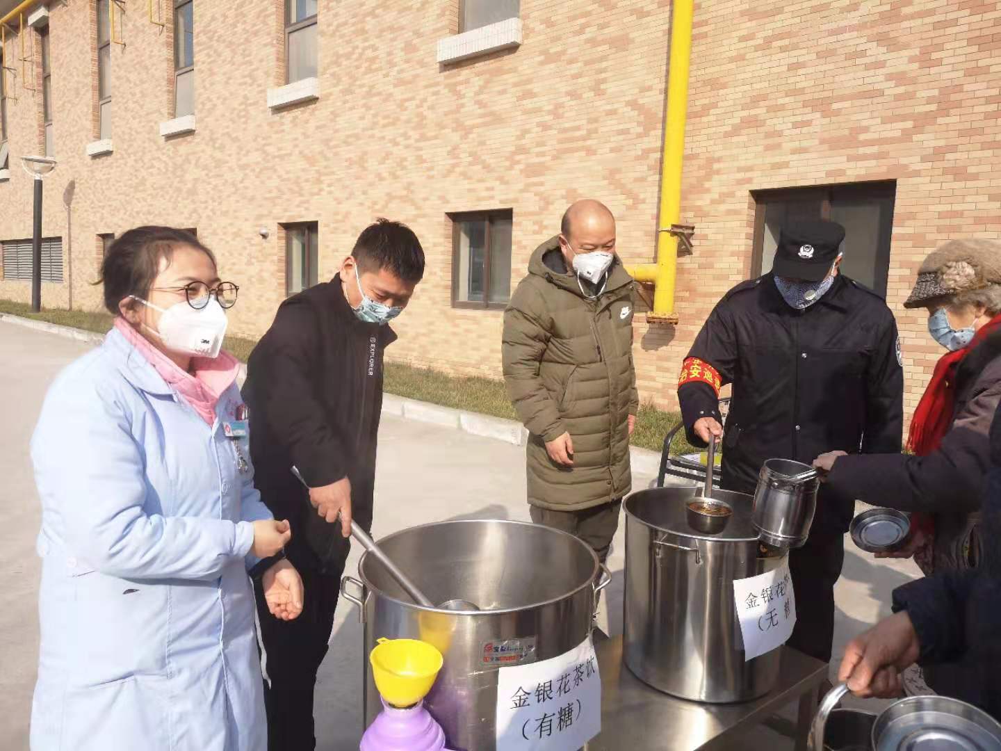 大年初二,后勤戰(zhàn)線上的疫情防控工作就全面鋪開,后勤黨總支委員、校醫(yī)院負(fù)責(zé)人劉強(qiáng)多方奔走,采購(gòu)口罩、消毒水等醫(yī)療衛(wèi)生用品,通過不懈努力,采購(gòu)到600余包口罩、500公斤過氧乙酸消毒水,有力保障了校園消毒使用。大年初三,后勤黨總支三支部書記、校醫(yī)院院長(zhǎng)樊虎杰從省疾控中心獲得可以有效預(yù)防病毒感染的金銀花茶飲中藥飲片配方,立即聯(lián)絡(luò)飲食服務(wù)中心黨支部書記梁本立一起著手采購(gòu)飲片,張征、張海東等幾位師傅著手熬制,為了照顧各類教職工人群的需求,他們還細(xì)心地準(zhǔn)備了有糖、無糖兩種口味,通過一整天的準(zhǔn)備工作,大年初四一大早,他們就將熬好的金銀花茶飲在沁園小區(qū)的三個(gè)分發(fā)點(diǎn)派送給教職工群眾,熱氣騰騰的茶飲受到大家的歡迎和好評(píng),一邊熬制,一遍派發(fā),餐廳后廚的4口大鍋不斷沸騰著,兩天時(shí)間連續(xù)熬制了12鍋金銀花茶飲,溫暖了全體教職工的心。