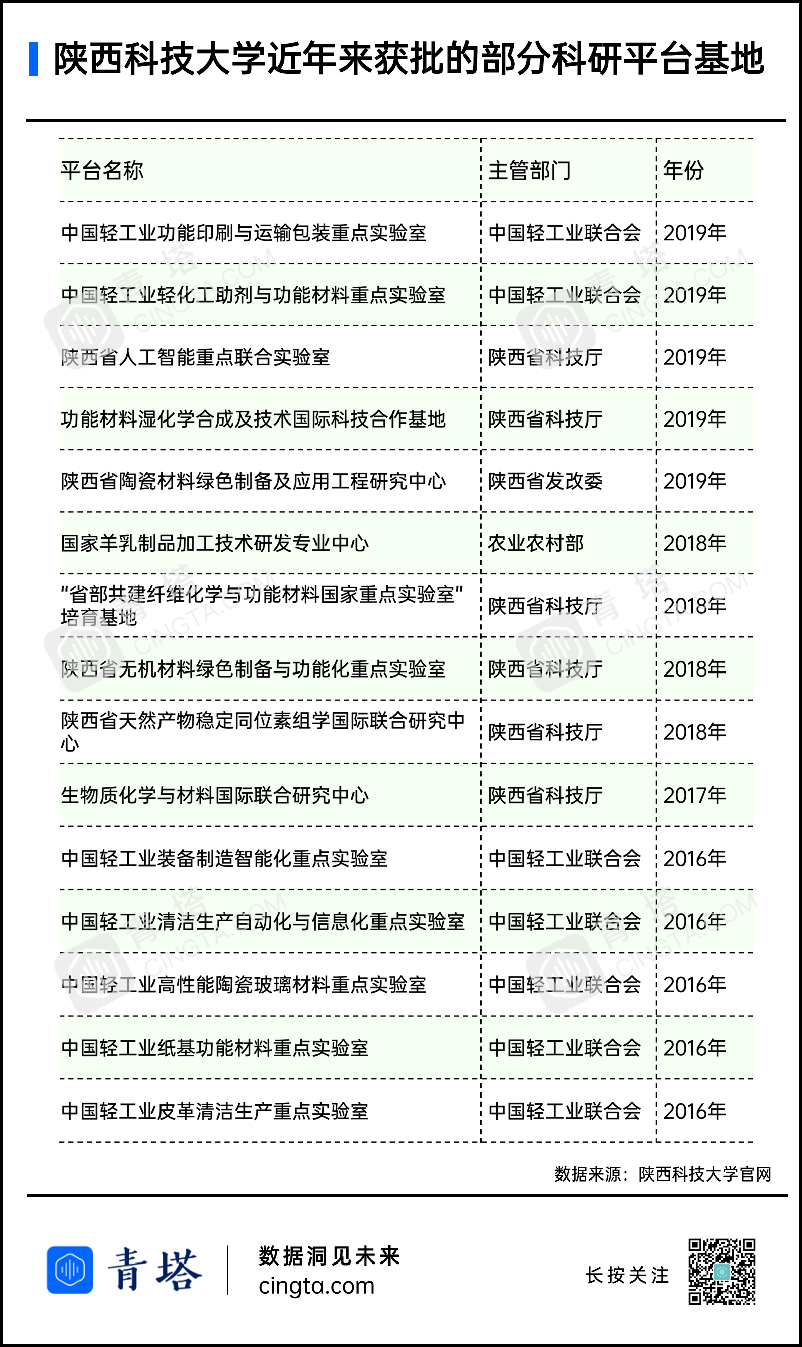 主持國家級重大科研項目,國家級項目立項數(shù)、項目金額屢創(chuàng)新高,種種突破的背后,是陜西科技大學科研平臺所提供的堅實支撐。2016年以來,陜西科技大學相繼獲批了國家羊乳制品加工技術研發(fā)專業(yè)中心、“省部共建纖維化學與功能材料國家重點實驗室”培育基地、陜西省無機材料綠色制備與功能化重點實驗室,以及多個中國輕工業(yè)重點實驗室等重要省部級科研平臺。