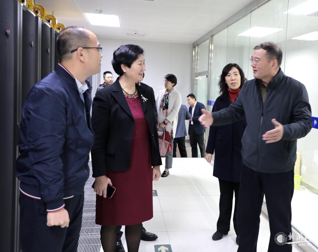 座談會(huì)后,王海燕一行在李志健、徐曉峰的陪同下,實(shí)地考察了我校一期投資建設(shè)的“智慧校園及一卡通”項(xiàng)目,參觀了中心機(jī)房、觀摩室和智慧機(jī)房,并在研討教室現(xiàn)場體驗(yàn)了智慧教室豐富的教學(xué)功能。