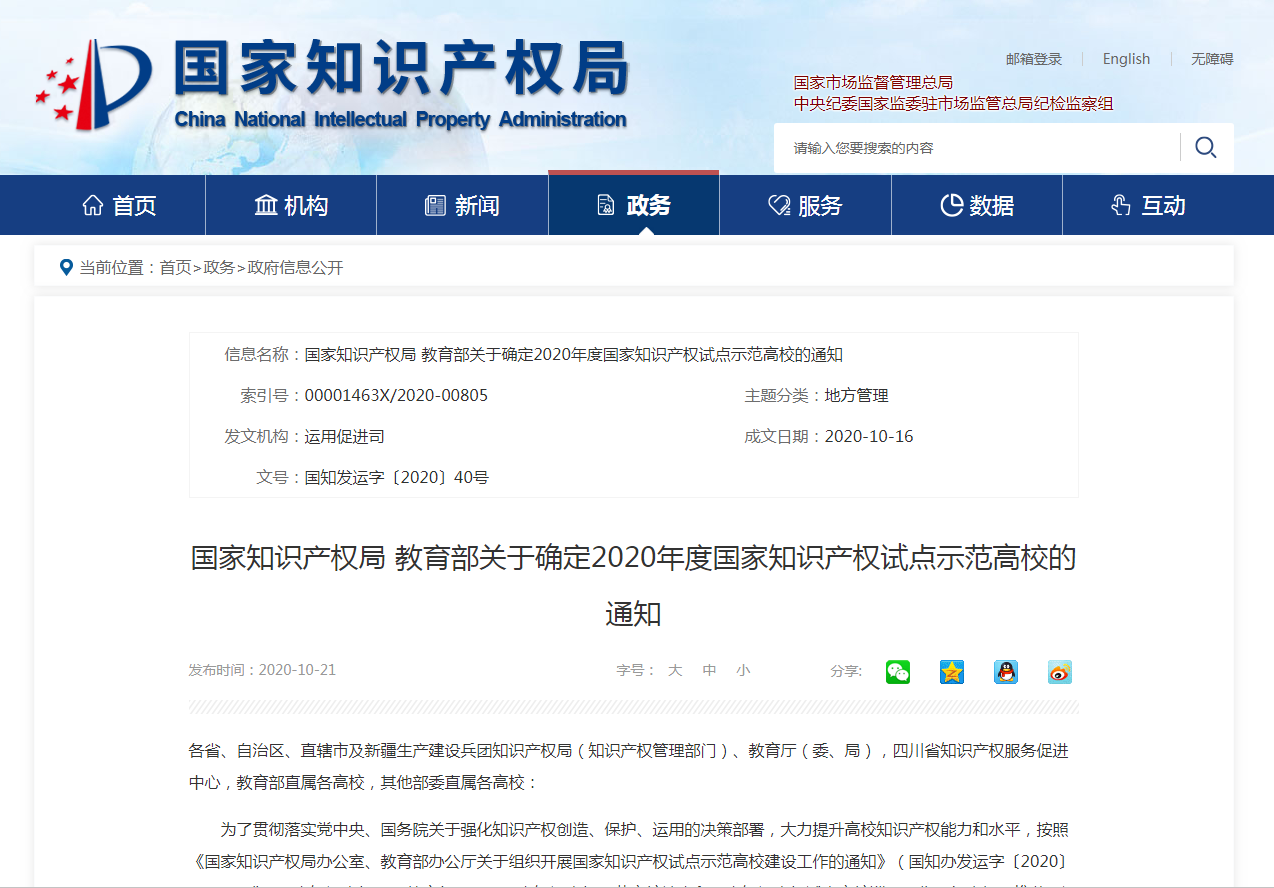 再上臺(tái)階!我校獲批2020年度國家知識(shí)產(chǎn)權(quán)試點(diǎn)示范高校