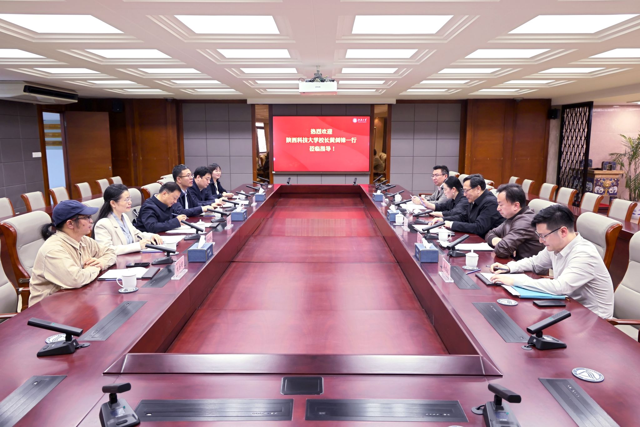 吳正國對黃劍鋒一行的到來表示熱烈歡迎。他介紹了學校的發(fā)展歷程、辦學特色以及近年來取得的成績。他指出,陜西科技大學與江南大學相似點頗多,兩校均以輕工技術為傳統(tǒng)優(yōu)勢學科,有著深厚的合作基礎,期待雙方加強聯(lián)系,優(yōu)勢互補,互相借鑒,全面深化合作。