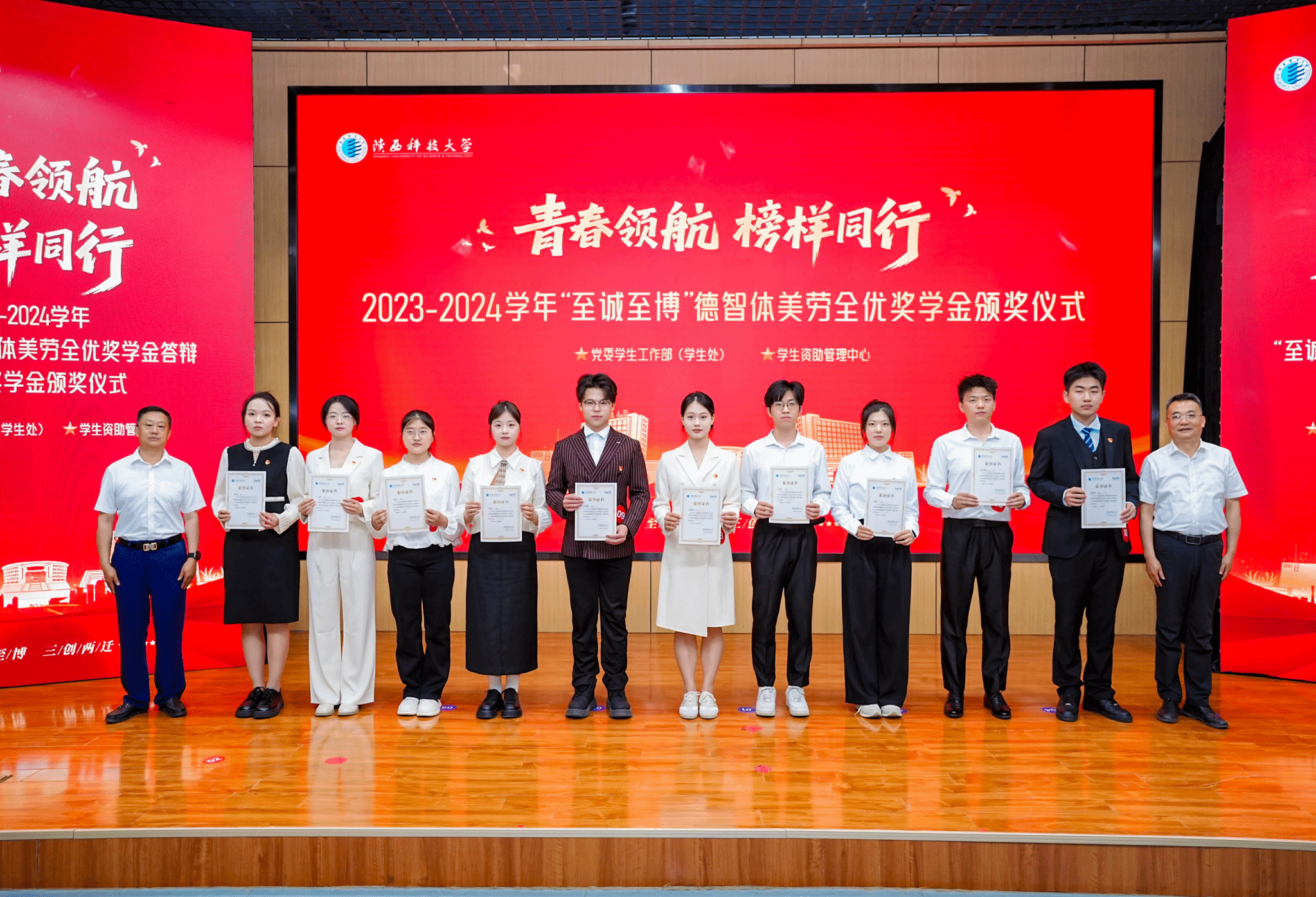 5月27日,陜西科技大學(xué)2023—2024學(xué)年“至誠(chéng)至博”德智體美勞全優(yōu)獎(jiǎng)學(xué)金答辯暨國(guó)家獎(jiǎng)學(xué)金頒獎(jiǎng)儀式在圖書(shū)館學(xué)術(shù)報(bào)告廳舉行。黨委書(shū)記樊建武、校長(zhǎng)黃劍鋒、黨委副書(shū)記李學(xué)軍出席活動(dòng),為10名“至誠(chéng)至博”全優(yōu)獎(jiǎng)學(xué)金獲得者和62名國(guó)家獎(jiǎng)學(xué)金獲得者頒獎(jiǎng)。