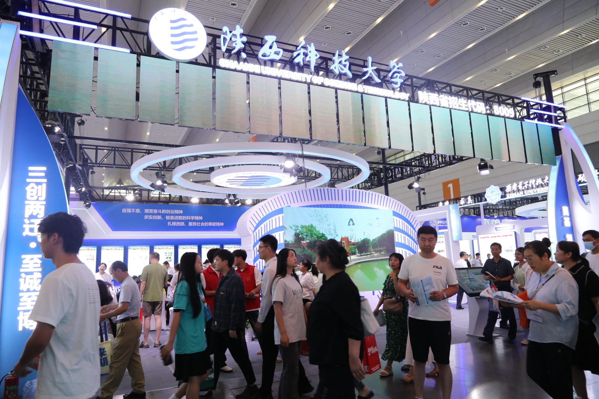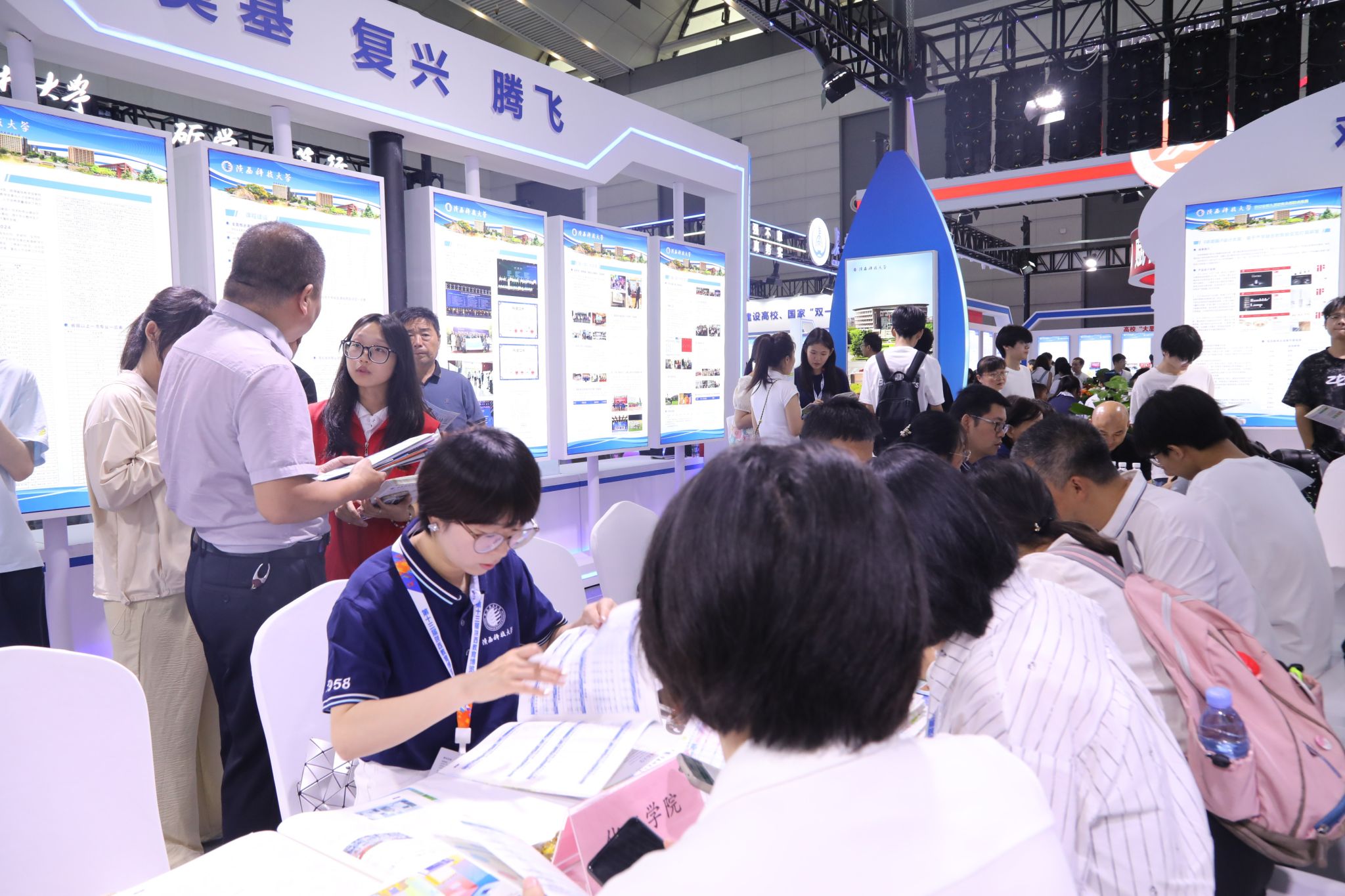 本次學(xué)校參展亮點(diǎn)紛呈,研究生院(研工部)精選21件研究生高水平創(chuàng)新成果參展,涵蓋工科、文科、理科及成果轉(zhuǎn)化類別,包括獲獎(jiǎng)實(shí)物作品、學(xué)術(shù)論文、專利設(shè)計(jì)等,展現(xiàn)了學(xué)校研究生培養(yǎng)的顯著成效;高??萍汲晒箙^(qū)重點(diǎn)展示了學(xué)校在秦創(chuàng)原平臺(tái)建設(shè)、科技成果轉(zhuǎn)化“三項(xiàng)改革”方面的進(jìn)展,以及在新材料、生物醫(yī)藥與大健康、人工智能等領(lǐng)域的4項(xiàng)最新科研成果;由招生辦選拔各學(xué)院骨干教師組成的招生咨詢團(tuán)隊(duì)現(xiàn)場為考生和家長提供權(quán)威解讀,就專業(yè)特色、就業(yè)前景等答疑解惑。