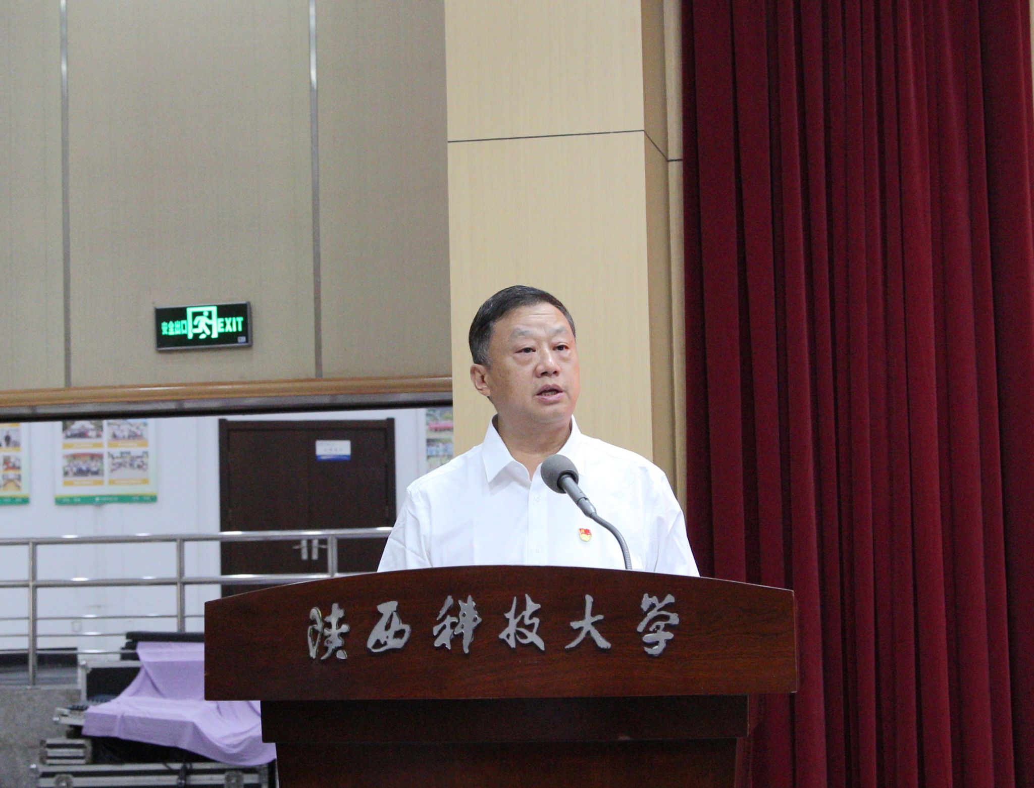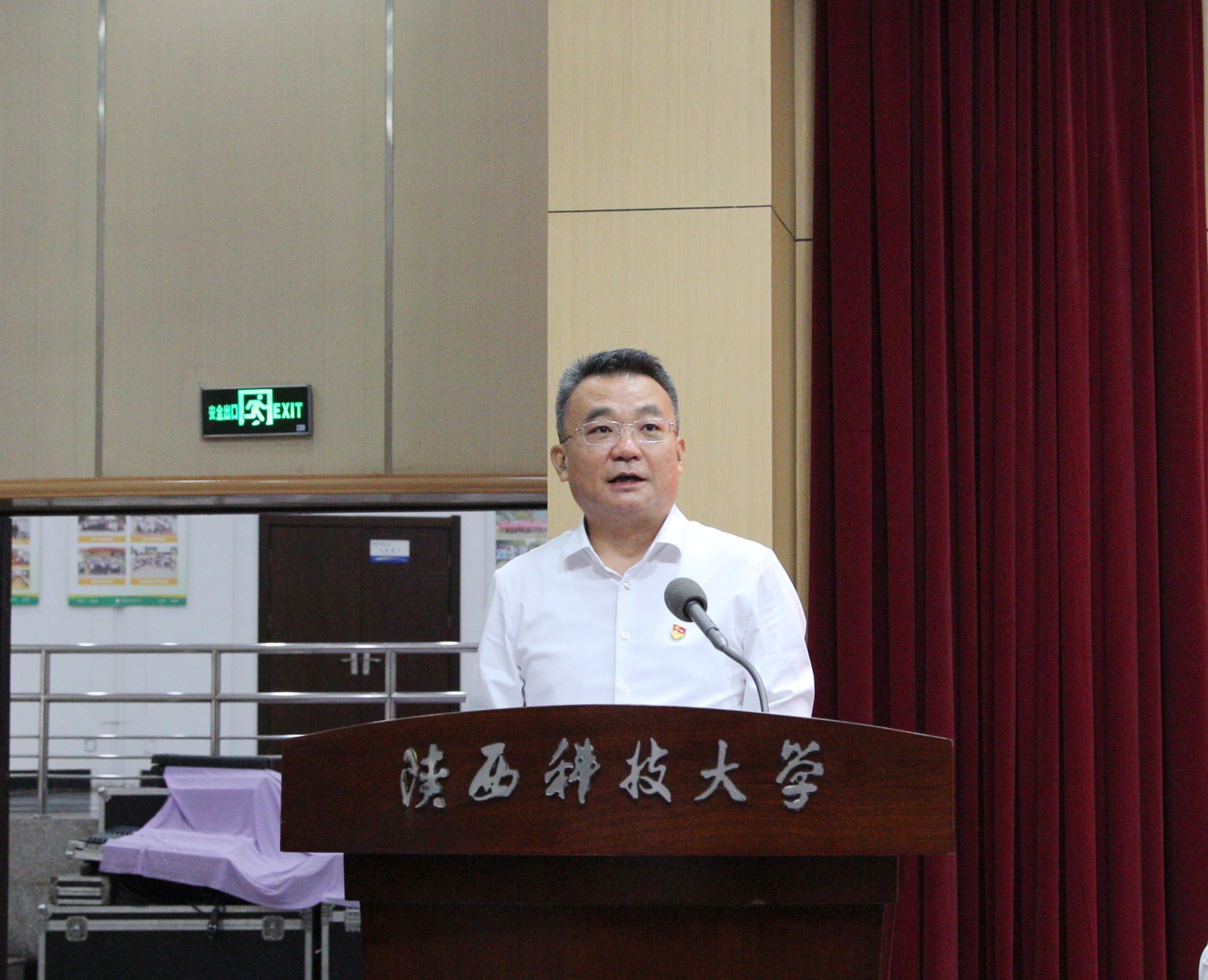黃劍鋒在主持大會時強調(diào),全校上下要銘記黨的光輝歷史,牢記初心使命,在追根溯源中筑牢信仰之基,在把握大勢中掌好前進之舵,在強化宗旨中擔(dān)當(dāng)發(fā)展之責(zé),不斷凝聚起砥礪奮進的強大力量,加快推進“雙一流”建設(shè),為教育強國、教育強省建設(shè)作出陜科大貢獻。