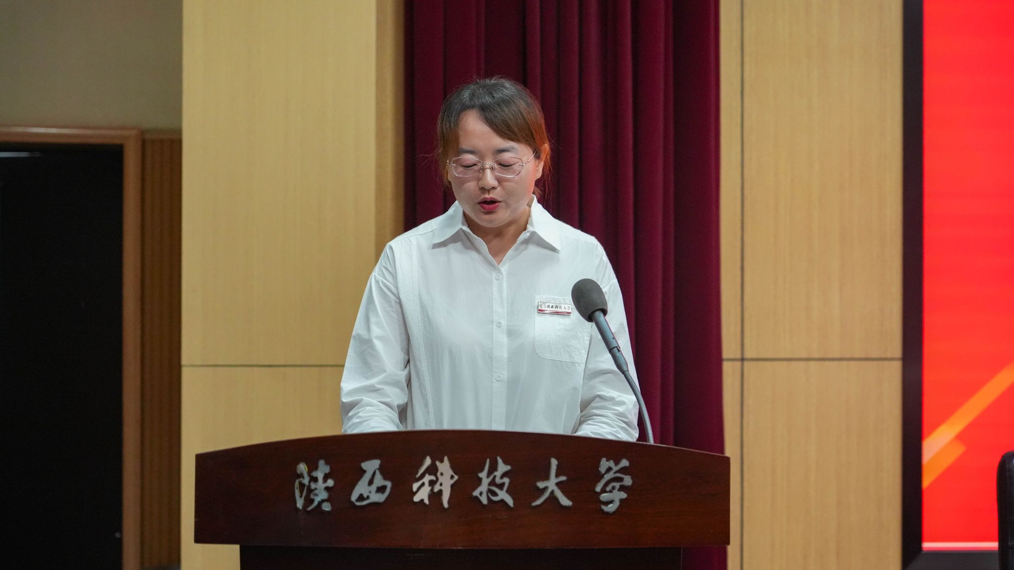 在陜西省青年突擊手、陜西省師德先進個人、數(shù)學與數(shù)據(jù)科學學院教授白云霄的領誓下,在場全體新入職教師莊嚴宣誓。