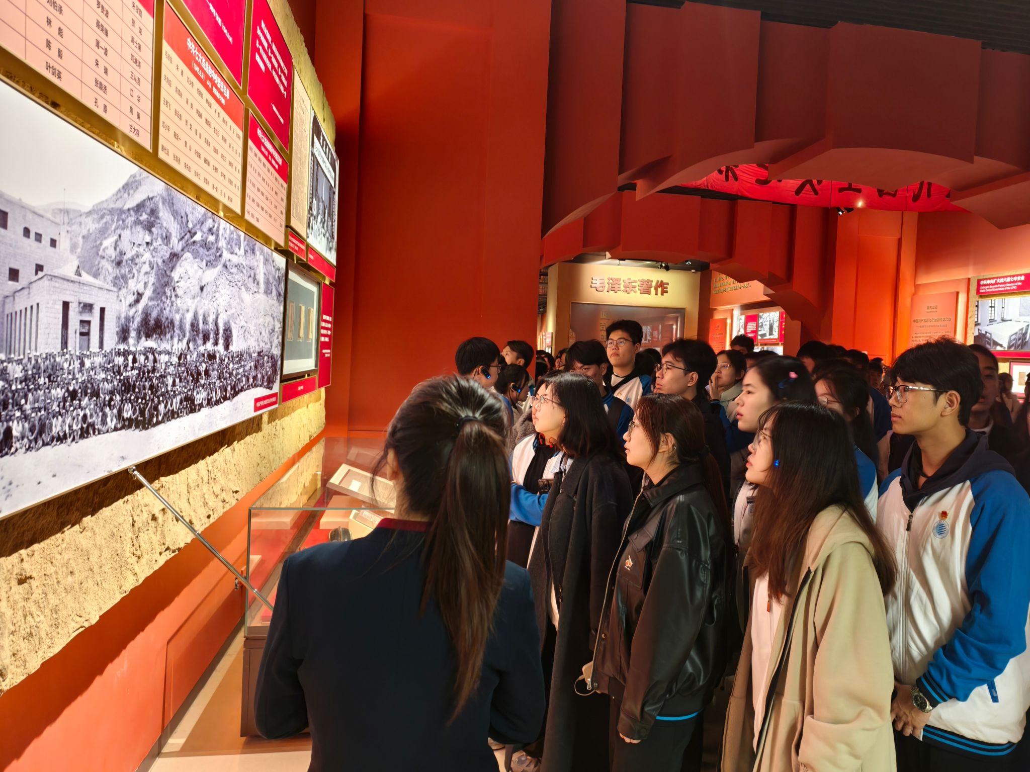研學(xué)期間,黨委書記樊建武來到楊家?guī)X革命舊址,看望慰問全體師生,與大家一同聽取由中共延安市委黨校副教授馮東紅講授的專題黨課。樊建武勉勵師生要認(rèn)真學(xué)習(xí)中共中央在延安十三年的奮斗歷史,深刻領(lǐng)會延安精神的豐富內(nèi)涵與時代價值,通過系統(tǒng)研學(xué)、深度思考和宣傳宣講做到內(nèi)化于心、外化于行;要充分發(fā)揮團學(xué)骨干作用,做紅色故事的講述者和延安精神的傳播者,將研學(xué)所得融入專業(yè)學(xué)習(xí)、科研創(chuàng)新與社會服務(wù);要在砥礪奮進中踐行初心使命,結(jié)合學(xué)校辦學(xué)特色與發(fā)展實際,深入挖掘和利用“紅色輕工業(yè)”資源,以實際行動展現(xiàn)新時代科大青年勇?lián)姑⒎?wù)國家的青春志向。