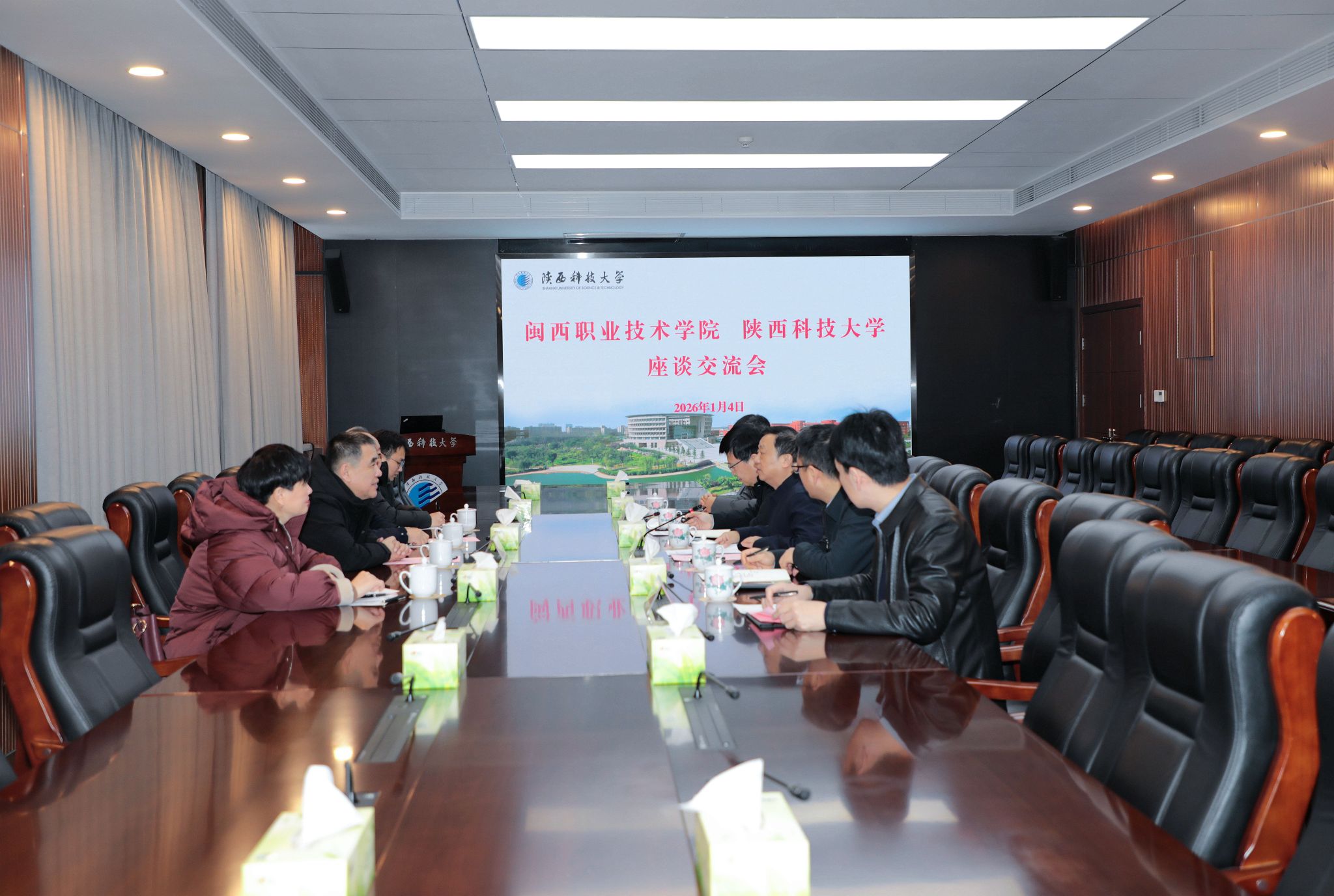 1月4日,閩西職業(yè)技術(shù)學(xué)院黨委書記盧偉耀(材料86級校友、著名文化創(chuàng)意與策劃人)一行來陜西科技大學(xué)調(diào)研交流。陜西科技大學(xué)黨委書記樊建武會見盧偉耀一行,雙方圍繞發(fā)揮學(xué)科專業(yè)優(yōu)勢、拓展合作領(lǐng)域等進(jìn)行交流。校長黃劍鋒出席座談會并致辭,副校長陸趙情參加座談會。