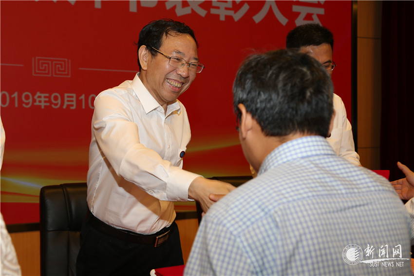 校黨委副書記溫鋒宣讀“陜西科技大學關于表彰2018年度優(yōu)秀教師及先進工作者的決定”和“陜西科技大學關于表彰從教滿30年榮譽教師的決定”。