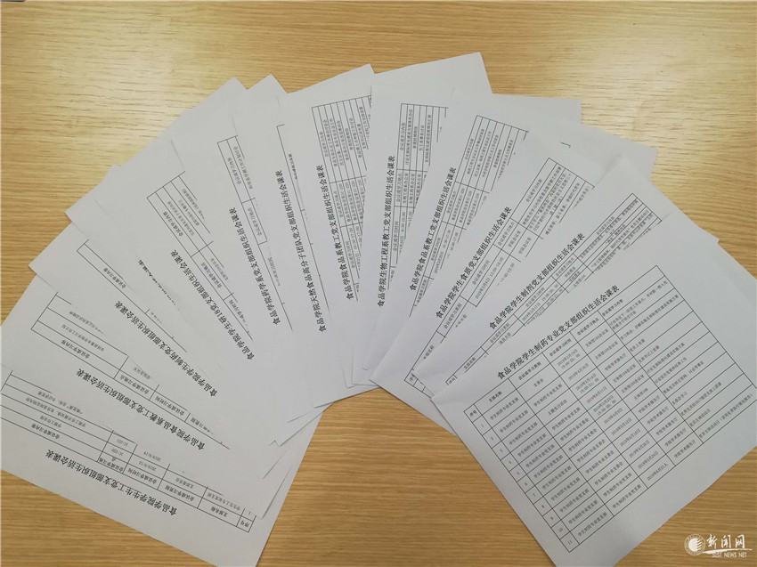 組織生活安排課表化。“食品系教工黨支部—9月25日—學院會議室—學習習近平總書記系列講話精神;食品學院研究生食品黨支部—10月11日—觀影《我和我的祖國》.......”一張張定制化的組織生活安排課表把食品學院11個教工、學生黨支部下半年的組織生活安排地清晰明確。這張課表由學院黨委指定,支部自選,明確學習內容、固定學習時間、細化學習要求。有了這張“課表”,黨支部書記提前“備課”,支部黨員提前“預習”,黨委書記隨時“查課”,學習效果就有了保證。
