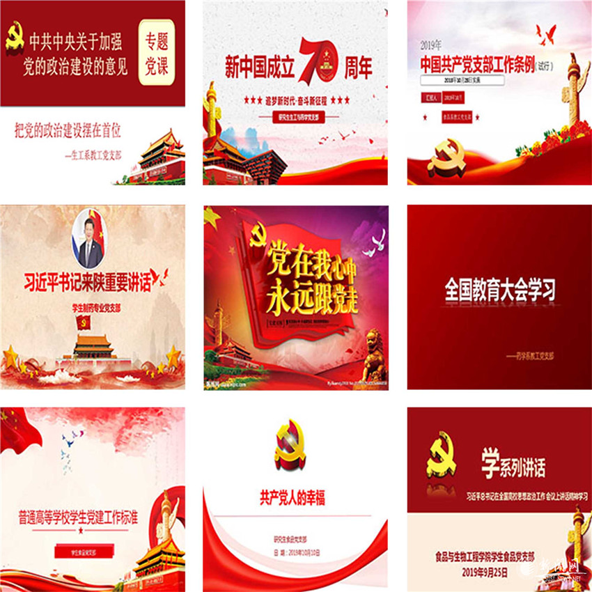 政治理論學習內容定制化。《普通高等學校學生黨建工作標準解讀》《習近平總書記來陜重要講話精神學習》《全國教育大會精神解讀》......一份份師生原創(chuàng)的PPT,讓政治理論學習不再困難。這些PPT以習近平新時代中國特色社會主義思想為學習內容列表,附帶詳細講義、視頻材料,經(jīng)學院黨委審核把關,成為各支部的理論學習“套餐”,確保學習有收獲、有成效。