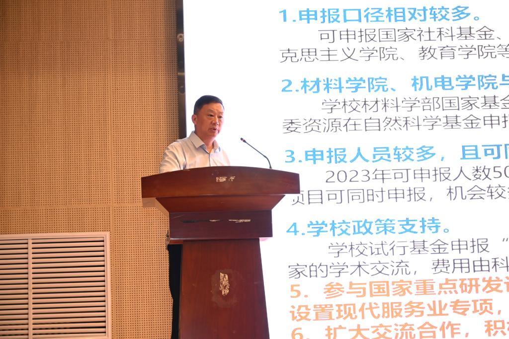 張成義教授做了題為《國家社科與藝術基金項目申報的技術要素》的報告,科學分析國家社科基金的技術要素和申報要點,并以多個典型成功案例分享申報經(jīng)驗。