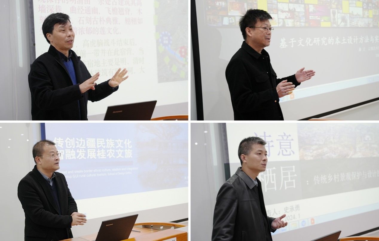 研討會分上午場主旨演講和下午場專題報(bào)告,線上線下同步。廣東工業(yè)大學(xué)藝術(shù)與設(shè)計(jì)學(xué)院盧世主教授、云南藝術(shù)學(xué)院研究生處處長森文教授、廣西師范大學(xué)設(shè)計(jì)學(xué)院院長劉濤教授、西安科技大學(xué)藝術(shù)學(xué)院院長楊惠珺教授、西北農(nóng)林科技大學(xué)風(fēng)景園林藝術(shù)學(xué)院系主任史承勇副教授分別帶來“革命老區(qū)鄉(xiāng)村振興設(shè)計(jì)創(chuàng)新”“基于文化研究的本土設(shè)計(jì)方法與實(shí)踐”“傳創(chuàng)邊疆民族文化、智融發(fā)展桂農(nóng)文旅”“設(shè)計(jì)賦能鄉(xiāng)村振興--傳統(tǒng)秦繡的語言轉(zhuǎn)化為例”“詩意棲居:傳統(tǒng)鄉(xiāng)村景觀保護(hù)與設(shè)計(jì)的思考”等主旨演講。主旨演講由劉宗明主持。