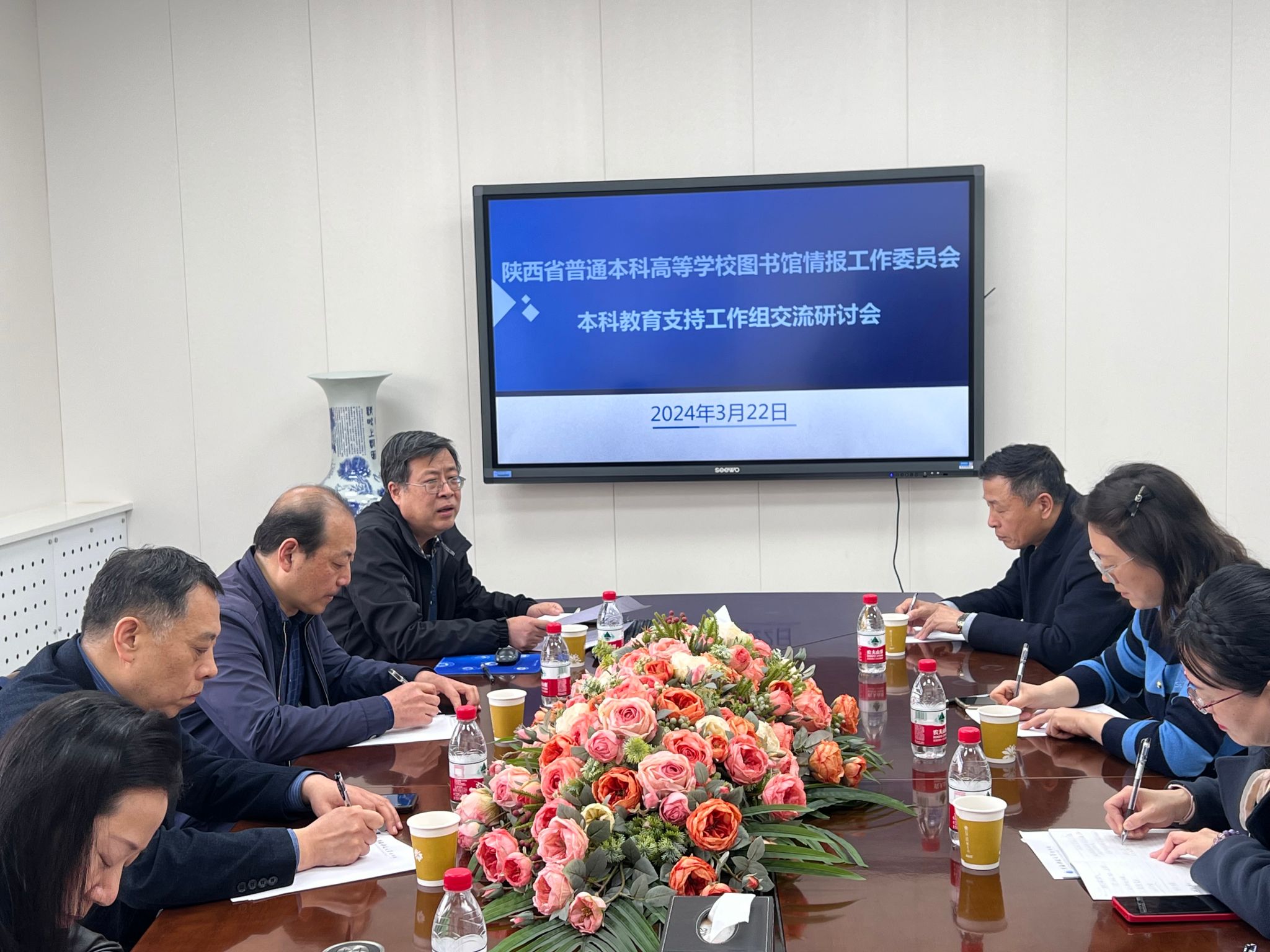 3月22日上午,2024年陜西省普通本科高等學校圖書情報工作委員會本科教育支持工作組交流研討會在我校圖書館召開,西北工業(yè)大學圖書館副館長郭永健,長安大學圖書館副館長陳鷹,陜西師范大學、西安工業(yè)大學、西安工程大學、西安航空學院、西安思源學院等相關代表參加了會議,會議由我校圖書館館長王海剛主持。