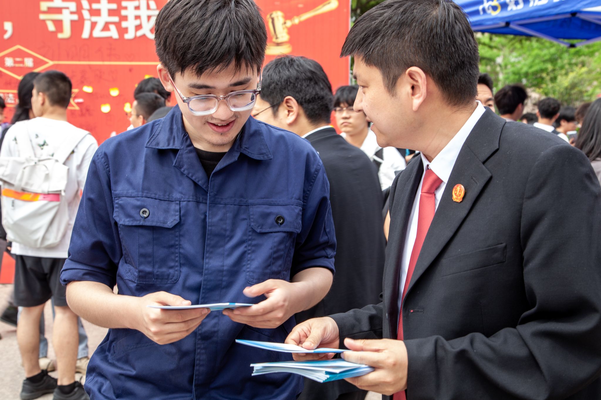 法官釋案敲警鐘,律師說法解煩憂——未央?yún)^(qū)法院的法官們走進(jìn)大學(xué)生中間發(fā)放普法宣傳案例折頁,并圍繞電信詐騙、校園網(wǎng)貸、防范邪教等廣大師生關(guān)心的法律問題以案說法;陜西豐東律師事務(wù)所的律師們耐心地向前來咨詢的同學(xué)們解讀關(guān)于三方協(xié)議、勞動合同和戀愛贈予等實(shí)際生活中存在的疑惑。法官“面對面”以案釋法,律師“零距離”答疑解惑,前來參與的同學(xué)們紛紛表示,真切感受到了學(xué)法、知法、懂法、守法的重要性,受益匪淺。