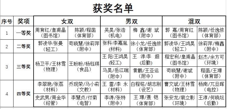 4月18日晚,為期九天的首屆教職工羽毛球賽在校北區(qū)體育館圓滿落下帷幕。此次比賽由校工會主辦、校體育部協(xié)辦,共有來自21個分會近200余名教職工參加比賽。