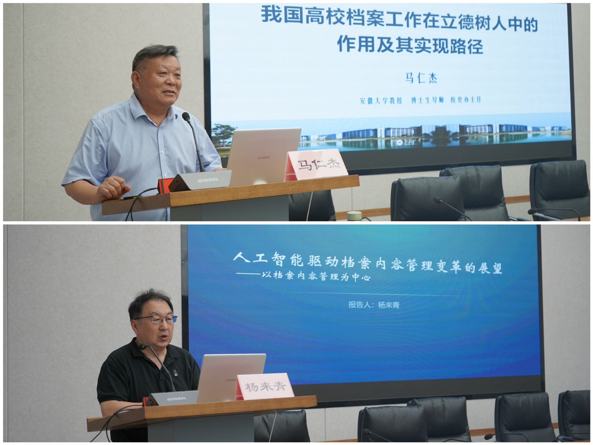 安徽大學(xué)三級(jí)教授、中國(guó)高等教育學(xué)會(huì)理事兼檔案工作分會(huì)副理事長(zhǎng)和學(xué)術(shù)部主任、中國(guó)檔案學(xué)會(huì)理事兼檔案學(xué)基礎(chǔ)理論委員會(huì)學(xué)術(shù)委員馬仁杰做了題為“我國(guó)高校檔案工作在立德樹人中的作用及其實(shí)現(xiàn)路徑”的報(bào)告。全國(guó)檔案領(lǐng)軍人才、檔案專家山東省檔案學(xué)會(huì)副理事長(zhǎng)、原青島市檔案館原二級(jí)巡視員楊來(lái)青做了題為“人工智能驅(qū)動(dòng)檔案內(nèi)容管理變革的展望”的報(bào)告。
