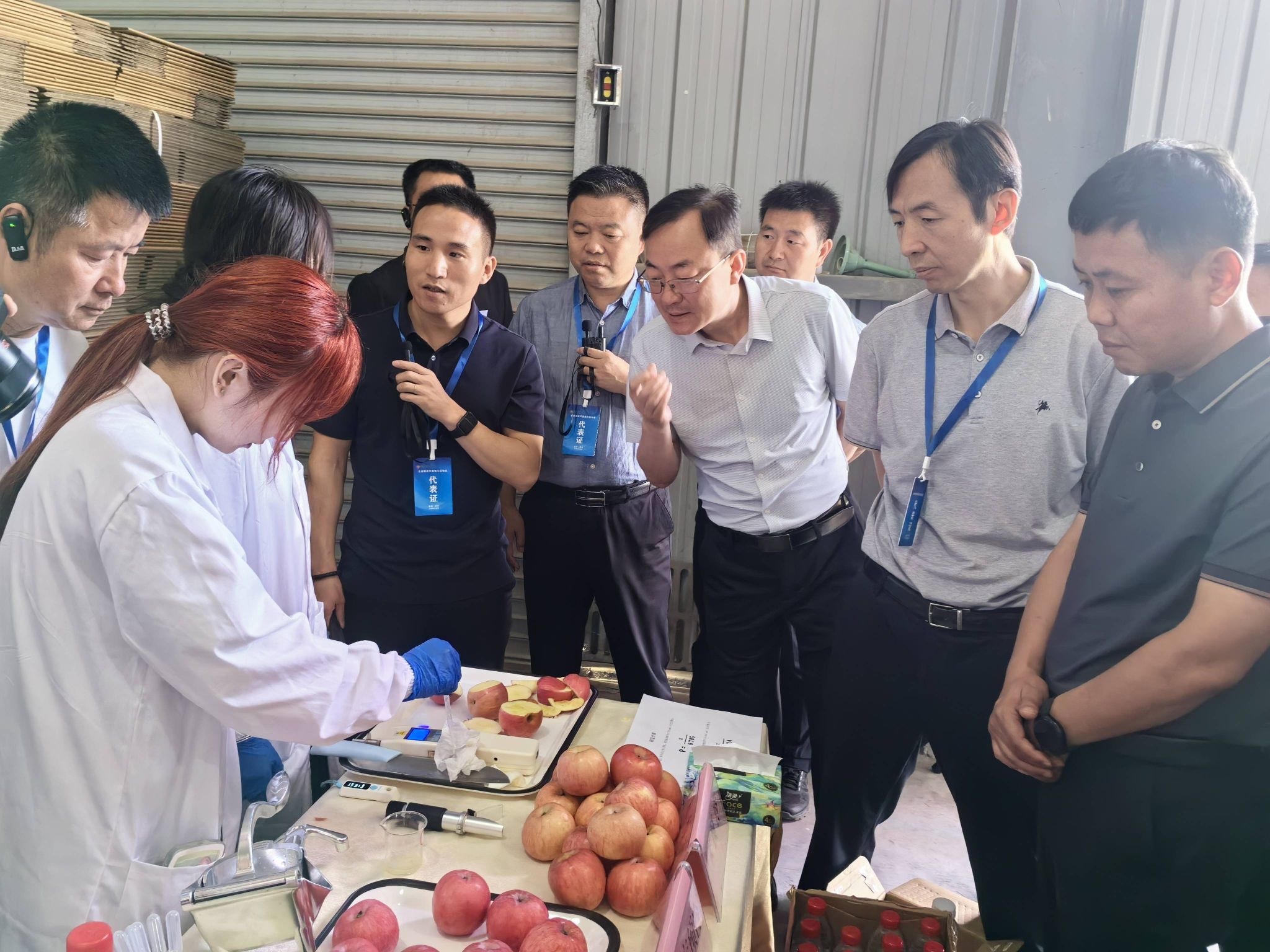 預(yù)冷操作是指在蘋果采收后,入庫冷藏或運(yùn)輸前通過低溫處理迅速去除田間熱、降低果實(shí)溫度的預(yù)處理過程,能有效提升蘋果抗冷害能力和鮮度指數(shù),延長冷藏保鮮期。受陜西省果業(yè)中心委托,農(nóng)研院從2023年啟動實(shí)施蘋果預(yù)冷技術(shù)研發(fā)試點(diǎn)工作,今年接續(xù)承擔(dān)全省蘋果預(yù)冷規(guī)程制定和示范推廣工作,指導(dǎo)全省19個蘋果生產(chǎn)縣預(yù)冷技術(shù),線下培訓(xùn)200余人,線上4.5萬人,助力陜西蘋果產(chǎn)業(yè)轉(zhuǎn)型升級、提質(zhì)增效。