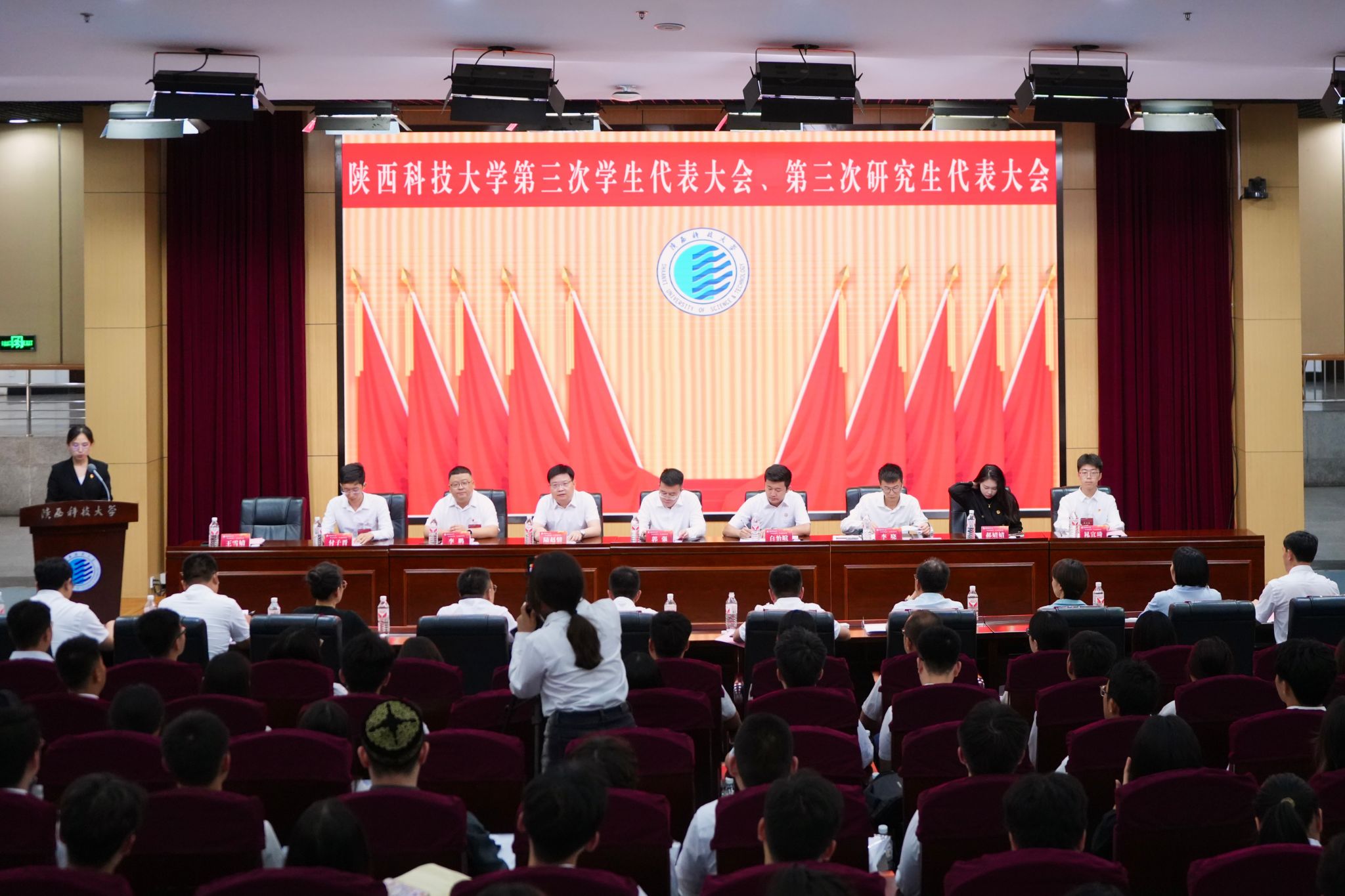 6月29日,陜西科技大學(xué)第三次學(xué)生代表大會(huì)、第三次研究生代表大會(huì)在圖書館一樓報(bào)告廳召開。校黨委副書記郭強(qiáng)、陜西省學(xué)生聯(lián)合會(huì)主席白怡暄、校黨委學(xué)工部部長(zhǎng)李曉、校黨委研工部部長(zhǎng)陸趙情、校團(tuán)委書記李鵬、各相關(guān)職能部門負(fù)責(zé)人、各學(xué)院學(xué)生工作負(fù)責(zé)人、學(xué)院團(tuán)委書記,省內(nèi)部分兄弟院校學(xué)生會(huì)、研究生會(huì)代表出席大會(huì),199名學(xué)代會(huì)代表、57名研代會(huì)代表參加大會(huì)。會(huì)議由校團(tuán)委副書記王雪婧主持。