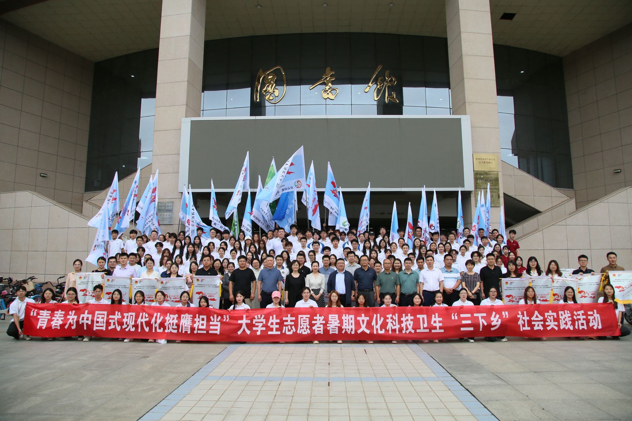 7月5日下午,以“青春為中國(guó)式現(xiàn)代化挺膺擔(dān)當(dāng)”為主題的2024年我校大學(xué)生暑期“三下鄉(xiāng)”社會(huì)實(shí)踐活動(dòng)暨大學(xué)生社區(qū)實(shí)踐計(jì)劃啟動(dòng)儀式在圖書館1樓報(bào)告廳舉行,學(xué)工部、研工部、教務(wù)處、校團(tuán)委等職能部門負(fù)責(zé)人,各學(xué)院學(xué)生工作負(fù)責(zé)人、團(tuán)學(xué)工作負(fù)責(zé)人,全體社會(huì)實(shí)踐團(tuán)隊(duì)師生200余人參加了啟動(dòng)儀式。儀式由校團(tuán)委副書記王雪婧主持。