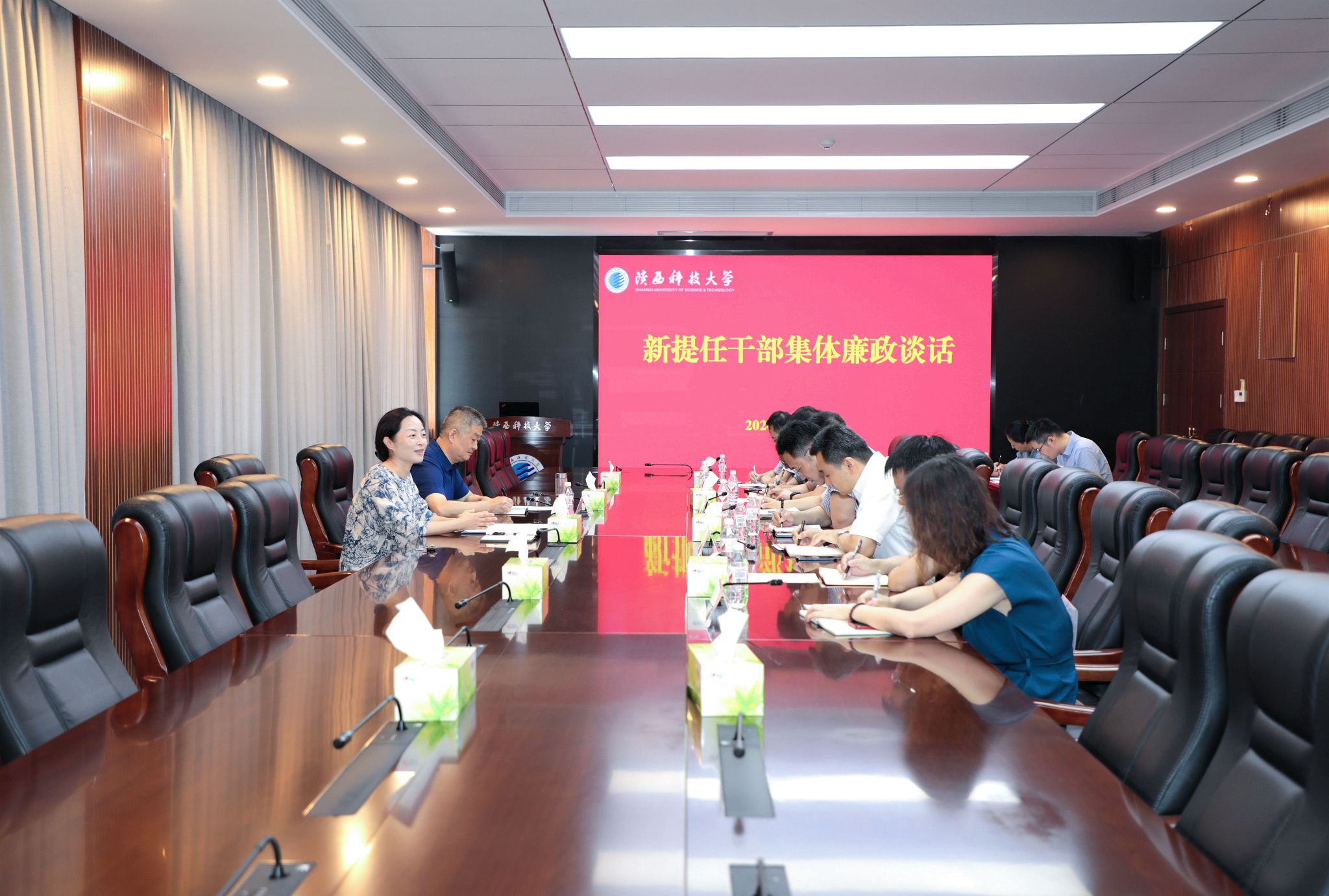 隨后,新提任處級干部逐一進行了表態(tài)發(fā)言,并現(xiàn)場簽定了《陜西科技大學新任領導干部廉政承諾書》。