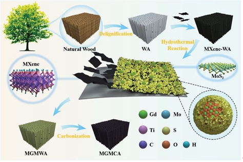 功能復(fù)合材料、先進(jìn)陶瓷材料領(lǐng)域:團(tuán)隊(duì)以木材為原料構(gòu)建出高性能的MoS2@Gd2O3/Mxene負(fù)載多孔碳?xì)饽z復(fù)合材料,表現(xiàn)出優(yōu)異的電磁波吸收性能,為開(kāi)發(fā)高性能、可持續(xù)的多功能生物質(zhì)材料開(kāi)辟了一條新途徑。團(tuán)隊(duì)與蒙娜麗莎集團(tuán)股份有限公司合作,開(kāi)展了建筑陶瓷薄型化的增強(qiáng)、增韌技術(shù)研究,使得陶瓷薄板的抗彎強(qiáng)度超過(guò)240 MPa,較改進(jìn)前提升了20%,攻克了陶瓷領(lǐng)域的技術(shù)性難題。