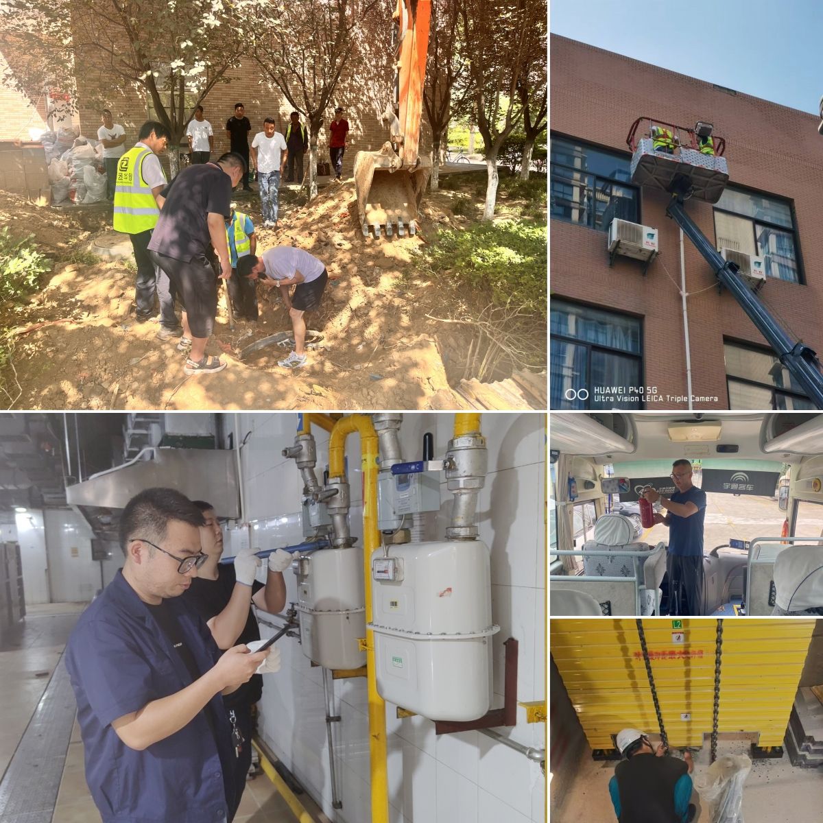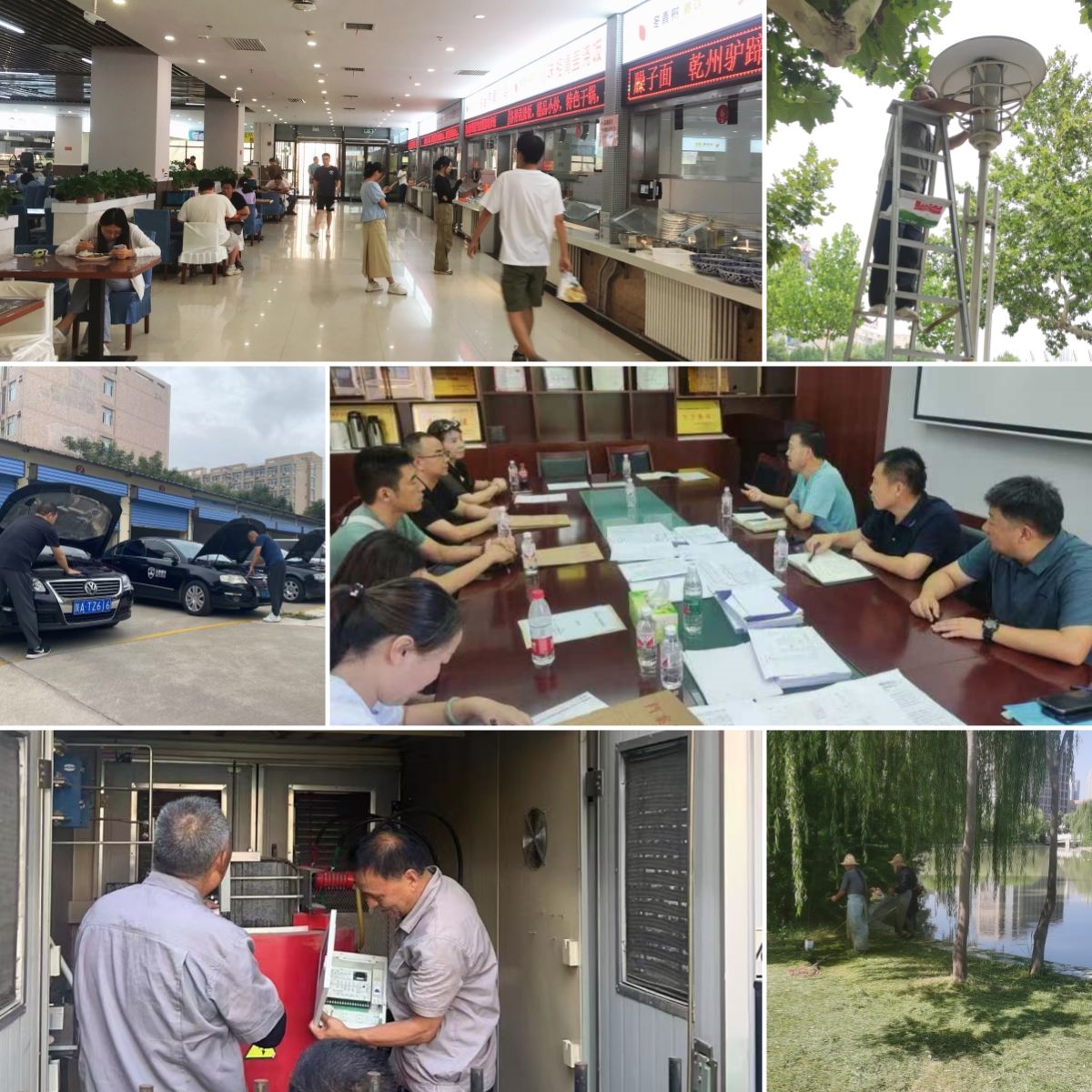 堅(jiān)守底線,安全穩(wěn)定放首位。集團(tuán)始終將安全穩(wěn)定放在第一位,嚴(yán)格落實(shí)各項(xiàng)安全管理制度,嚴(yán)格值班值守,常態(tài)化做好日常安全檢查督查,科學(xué)調(diào)整高溫天氣室外作業(yè)時(shí)間,先后對校內(nèi)6臺(tái)變壓器及部分高壓電纜進(jìn)行耐壓、絕緣預(yù)防性試驗(yàn),合理規(guī)劃校園和沁園小區(qū)電動(dòng)自行車充電樁區(qū)域建設(shè),時(shí)刻關(guān)注食品安全、燃?xì)獍踩蜕a(chǎn)安全,確保各項(xiàng)工作順利開展。