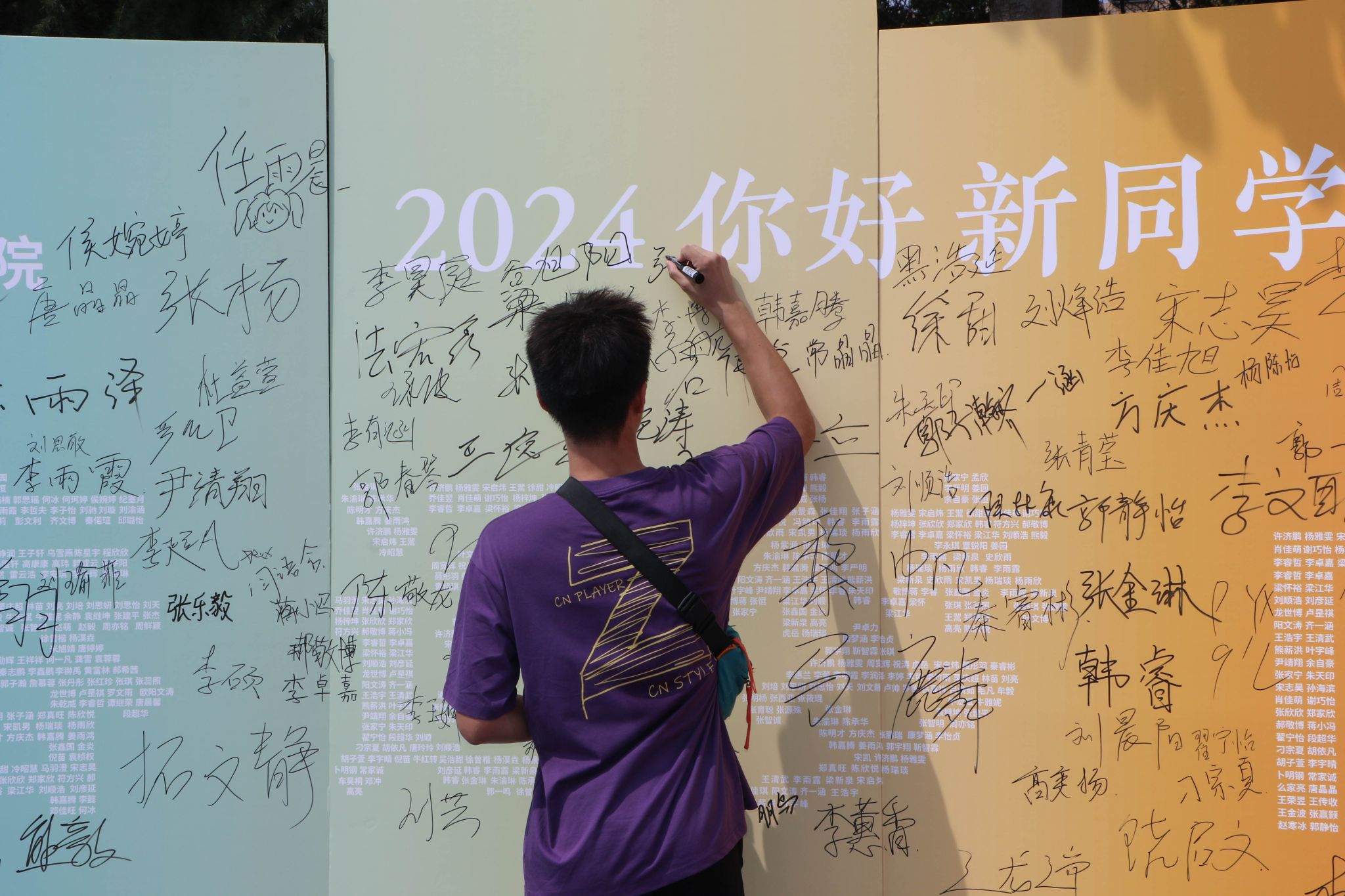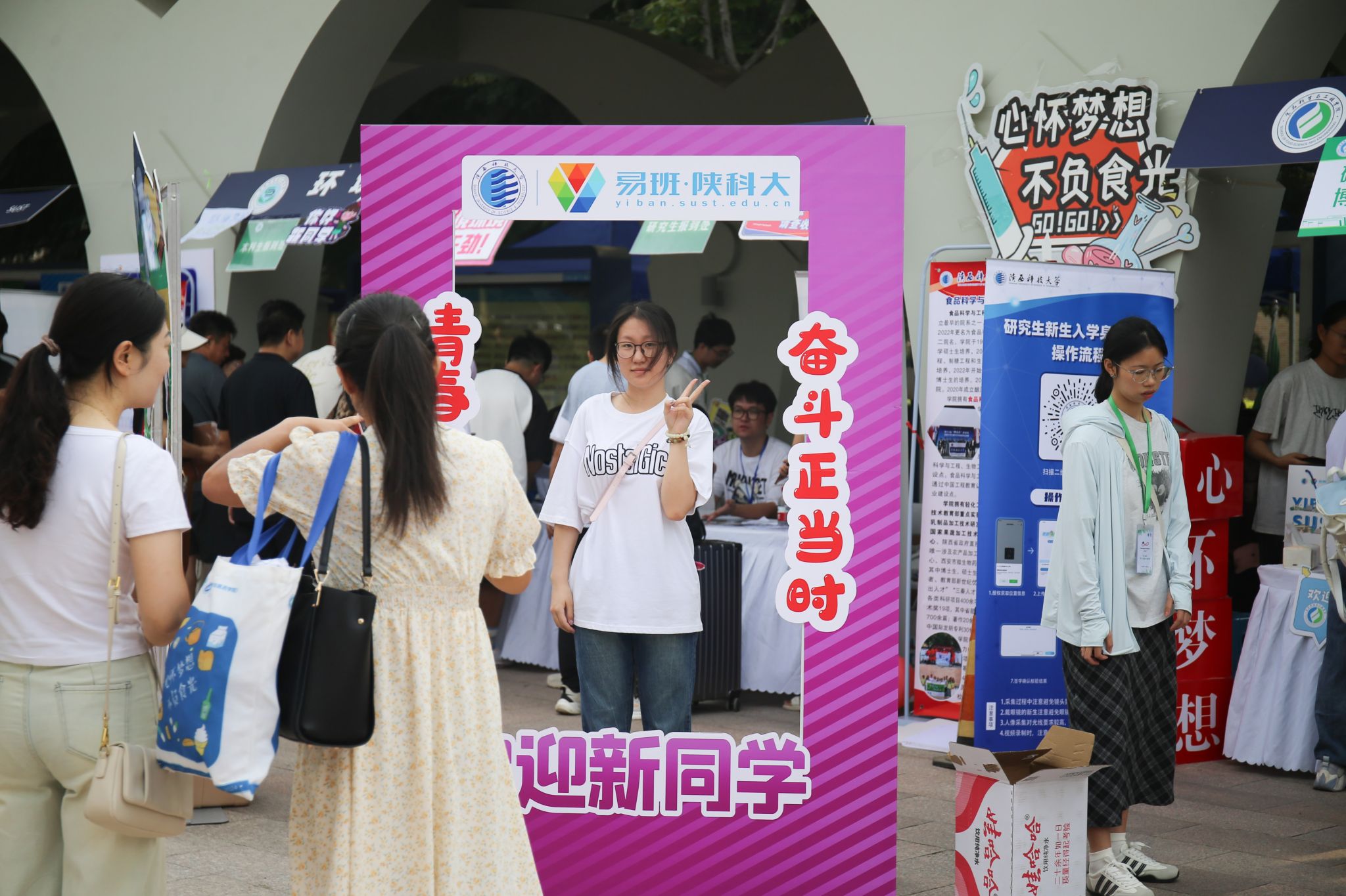 車(chē)站、地鐵站、迎新大道兩側(cè)熱心幫忙的志愿者,報(bào)到處親切問(wèn)候的學(xué)長(zhǎng)學(xué)姐,給予了每一位新生滿(mǎn)滿(mǎn)的歸屬感,拿起筆寫(xiě)下自己的名字,便是與陜科大故事的開(kāi)始。
