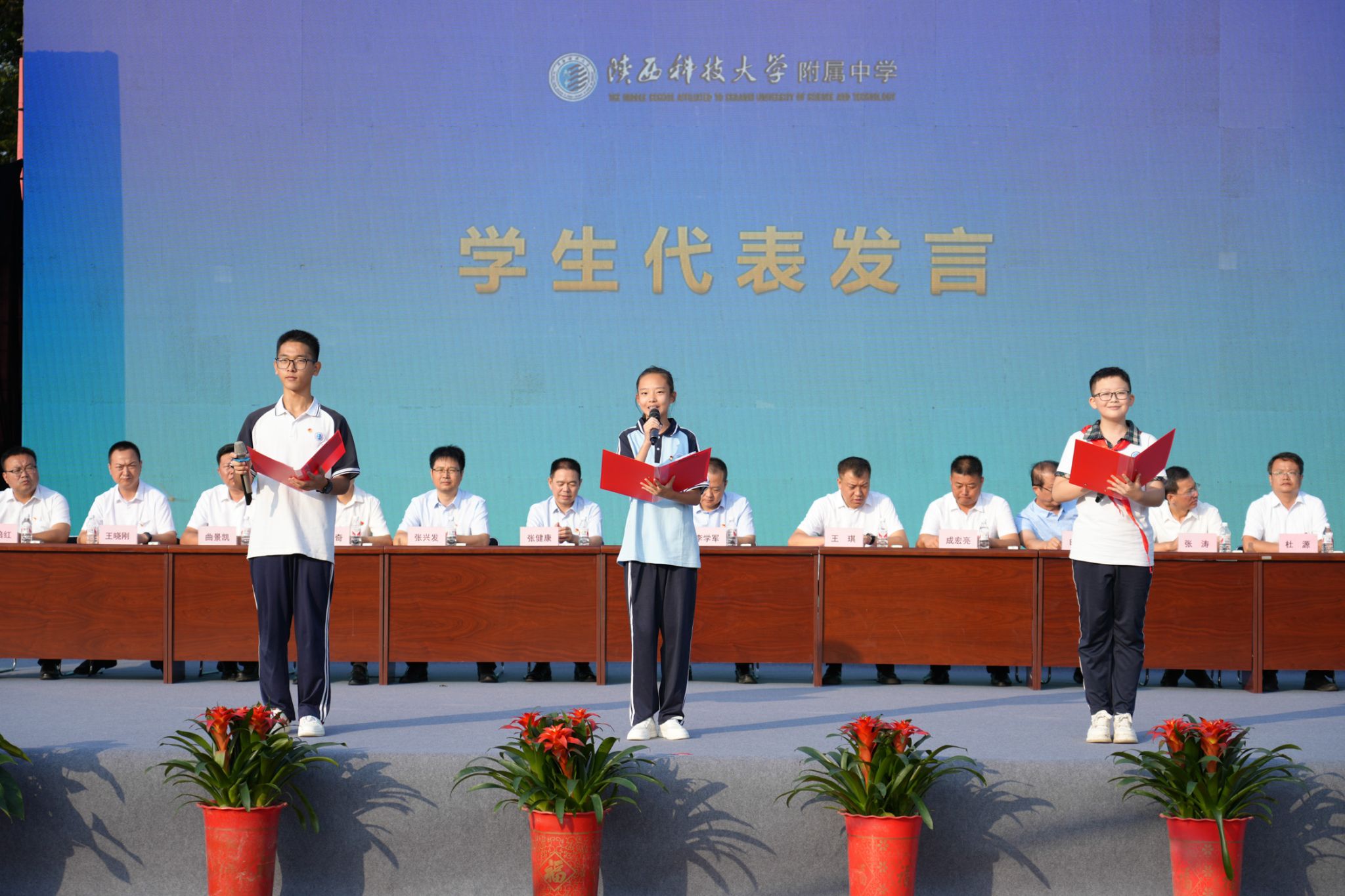 六年級(jí)5班黃彥博、初一2班金子涵、高二9班李昊軒作為學(xué)生代表進(jìn)行了發(fā)言。