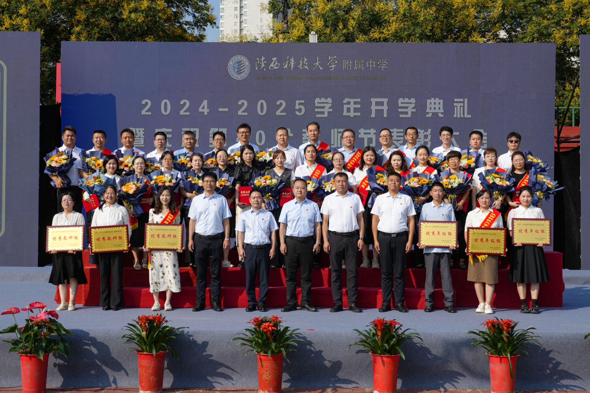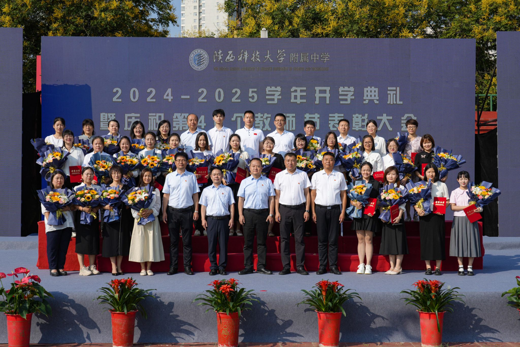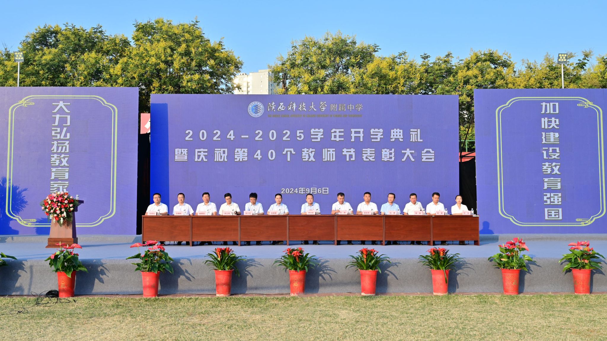 9月6日上午,附屬中學(xué)2024—2025學(xué)年開(kāi)學(xué)典禮暨慶祝第40個(gè)教師節(jié)表彰大會(huì)在附中田徑場(chǎng)隆重舉行。校黨委副書(shū)記李學(xué)軍出席大會(huì)并為教齡滿三十年教師頒發(fā)榮譽(yù)證書(shū)。