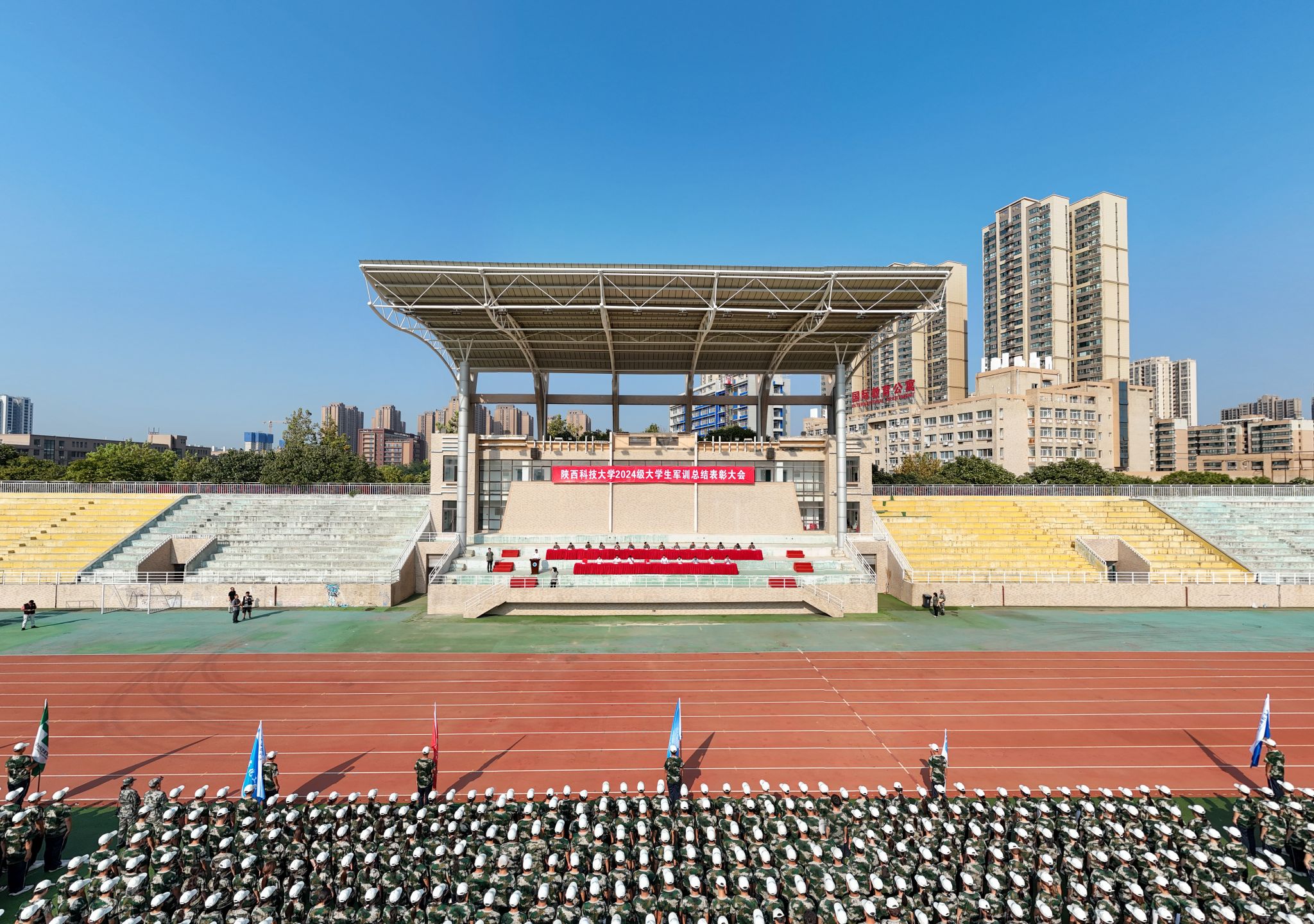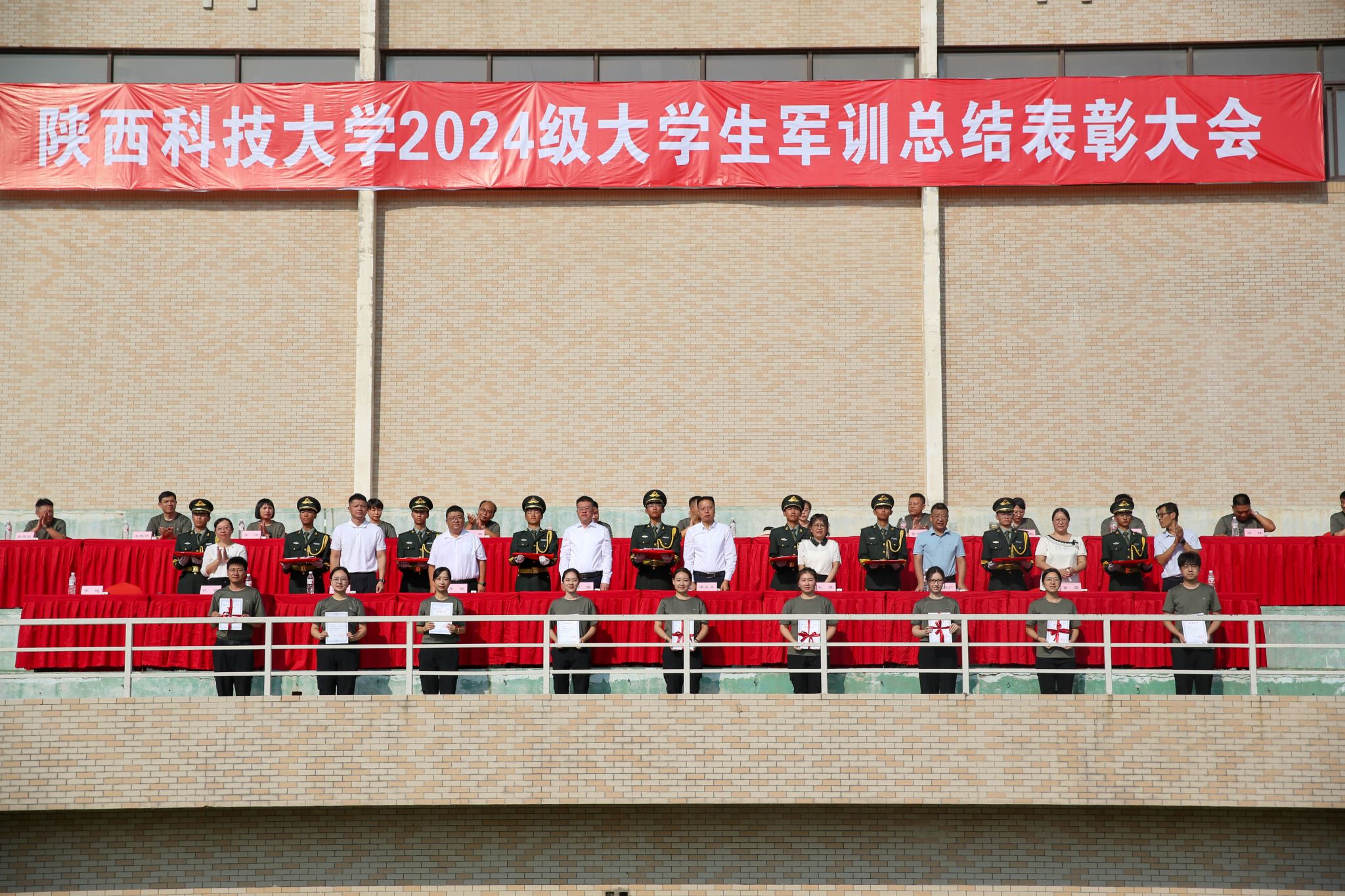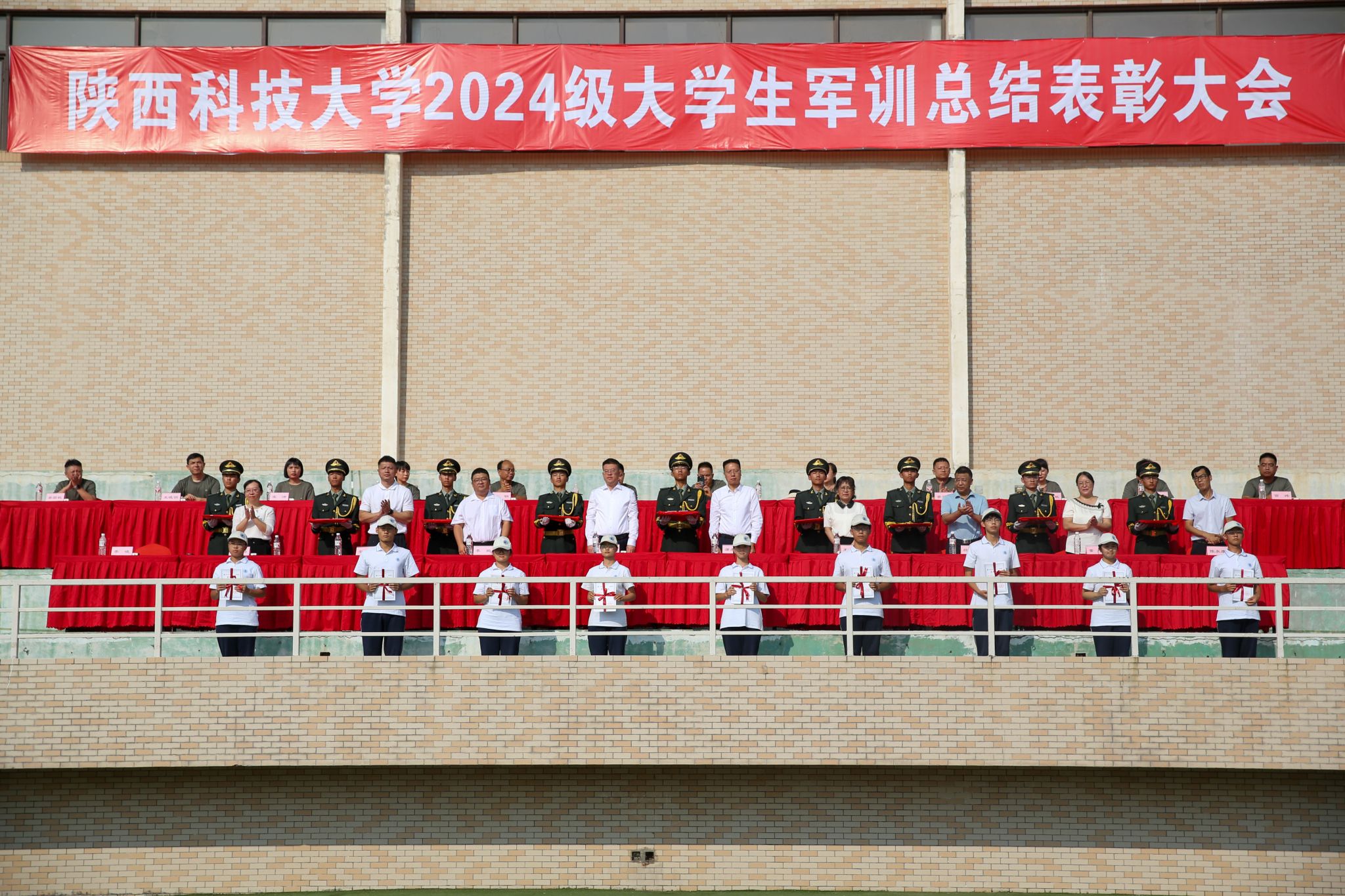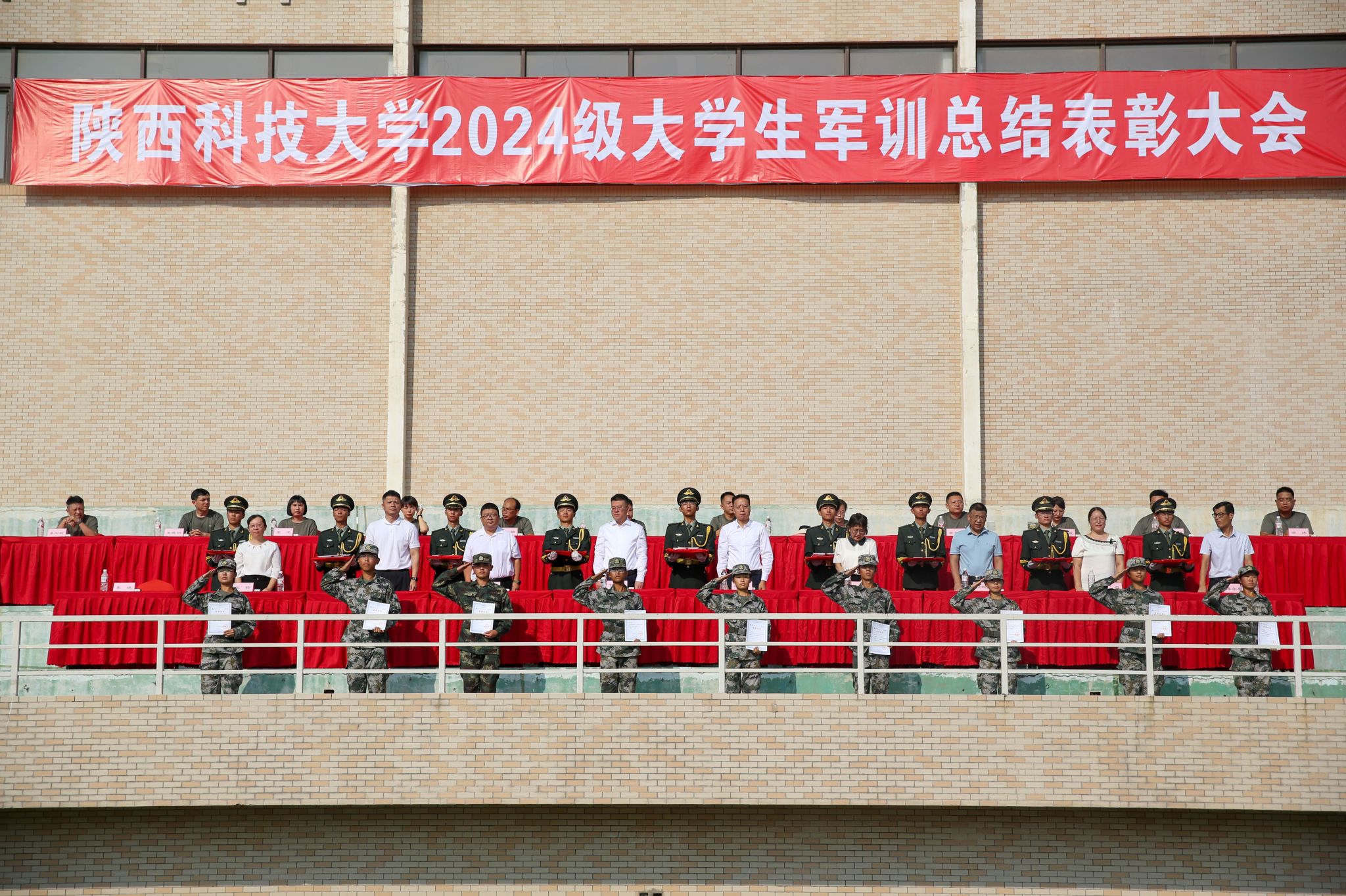 9月13日上午,我校2024級大學(xué)生軍事訓(xùn)練總結(jié)表彰大會(huì)在標(biāo)準(zhǔn)田徑場舉行。校黨委副書記郭強(qiáng)、副校長蒲永平及軍訓(xùn)團(tuán)各部門負(fù)責(zé)人、各營教導(dǎo)員參加大會(huì)。大會(huì)由學(xué)工部(武裝部)部長李曉主持。