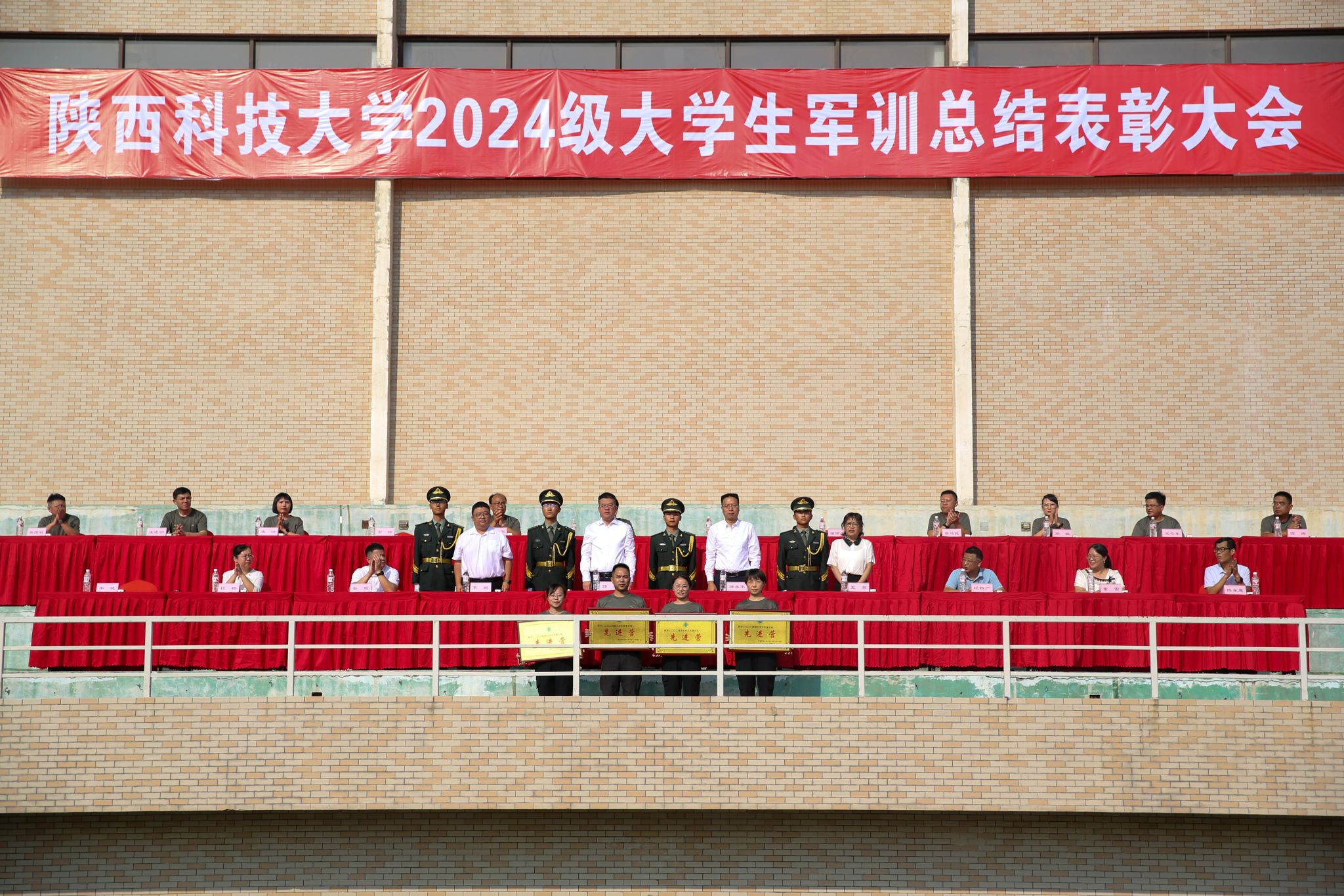 與會(huì)領(lǐng)導(dǎo)為受表彰的先進(jìn)集體和個(gè)人頒獎(jiǎng),七營、十四營、六營、十營榮獲先進(jìn)營稱號;嚴(yán)渭青、魏倩茹、田雨杰、安玲榮獲優(yōu)秀教導(dǎo)員稱號;一營五連等23個(gè)連隊(duì)榮獲先進(jìn)連稱號;三營一連教官張遠(yuǎn)琎等35名教官榮獲優(yōu)秀教官稱號;二營一連指導(dǎo)員上官文菲等24名同志榮獲優(yōu)秀指導(dǎo)員稱號;劉宇彤等237名同學(xué)榮獲優(yōu)秀學(xué)員稱號。