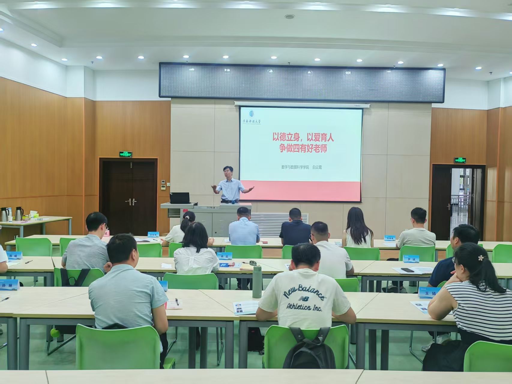 開班首場報告由數(shù)學(xué)與數(shù)據(jù)科學(xué)學(xué)院白云霄教授分享題為《以德立身,以愛育人—爭做四有好老師》的主題報告。白云霄結(jié)合自己三十余年從教經(jīng)歷,深入淺出地詮釋了"師德"與"師愛"的深刻內(nèi)涵。他談到,新時代教師不僅要傳授知識,更要塑造靈魂,要以德立身、以德立學(xué)、以德施教。他寄語青年教師要珍惜韶華、勇?lián)姑?,將個人發(fā)展融入學(xué)校發(fā)展大局,以"躬耕教壇,強(qiáng)國有我"的擔(dān)當(dāng)精神,在教書育人的崇高事業(yè)中實(shí)現(xiàn)人生價值。