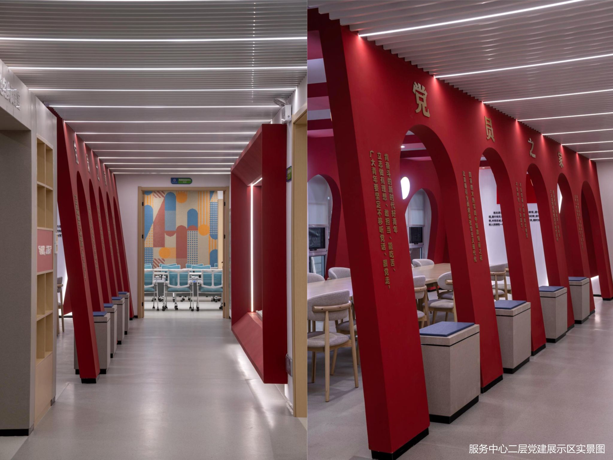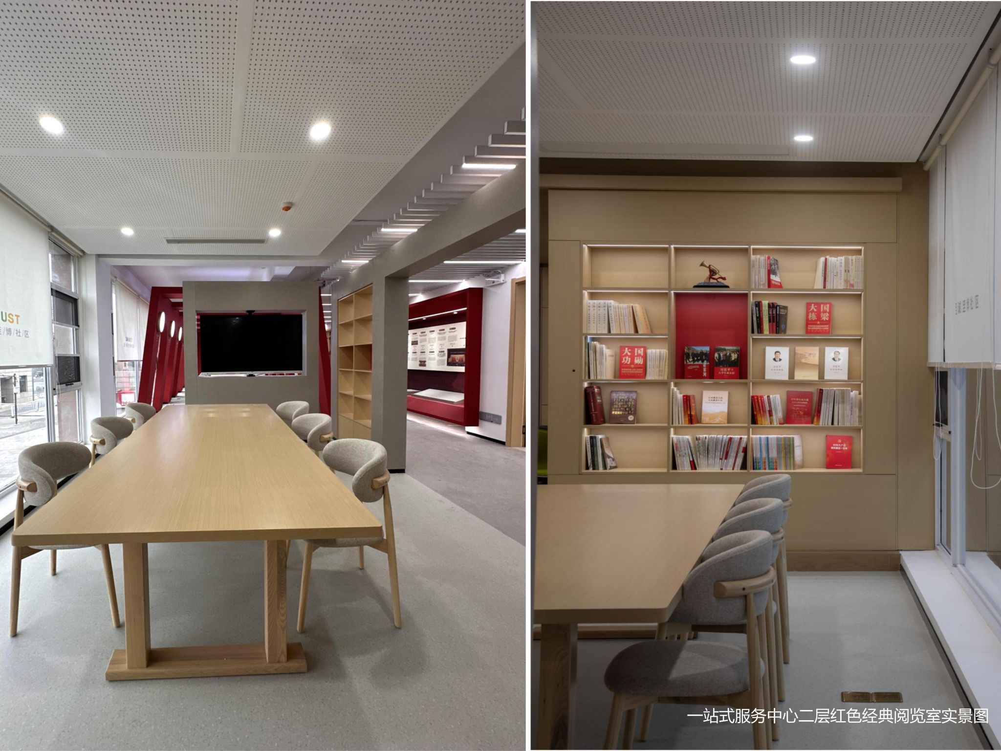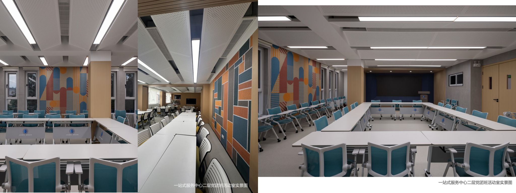 中心注重突出黨建引領(lǐng)的思政育人功能,在二樓建成了黨員之家、紅色經(jīng)典閱覽室、輔導(dǎo)員之家和若干黨團(tuán)班活動(dòng)室。黨員之家以窯洞為造型,寓意傳承和弘揚(yáng)延安精神,迎面懸掛黨旗、鐫刻入黨誓詞,立柱展示中國(guó)共產(chǎn)黨人精神譜系的偉大精神,沉浸式環(huán)境涵養(yǎng)紅色基因;輔導(dǎo)員之家將系統(tǒng)展示我校輔導(dǎo)員隊(duì)伍建設(shè)的思路、成果及成效,服務(wù)我校輔導(dǎo)員隊(duì)伍研學(xué)研討,推動(dòng)隊(duì)伍職業(yè)化專業(yè)化發(fā)展;紅色經(jīng)典閱覽室配備系列黨的歷史與黨建方面書籍,服務(wù)廣大黨員閱讀研討紅色經(jīng)典;輔導(dǎo)員之家、紅色經(jīng)典閱覽室、黨員之家空間聯(lián)通,充分體現(xiàn)了思想政治工作學(xué)與做、教與學(xué)的知行合一與育人主旨;黨團(tuán)班活動(dòng)室設(shè)有兩個(gè),一個(gè)可容納70余人共同使用,并可以隨時(shí)關(guān)閉隔離門分割為兩個(gè)互不干擾的獨(dú)立活動(dòng)室使用,另一個(gè)可容納近60人共同使用,全部配備自由移動(dòng)桌椅和電子屏幕,為學(xué)生黨支部、團(tuán)支部及班級(jí)活動(dòng)開展提供可容納不同人數(shù)的空間場(chǎng)地和賦能增效的現(xiàn)代化設(shè)施支持,服務(wù)黨團(tuán)班探索開展高質(zhì)量、沉浸式、互動(dòng)性集體活動(dòng)。