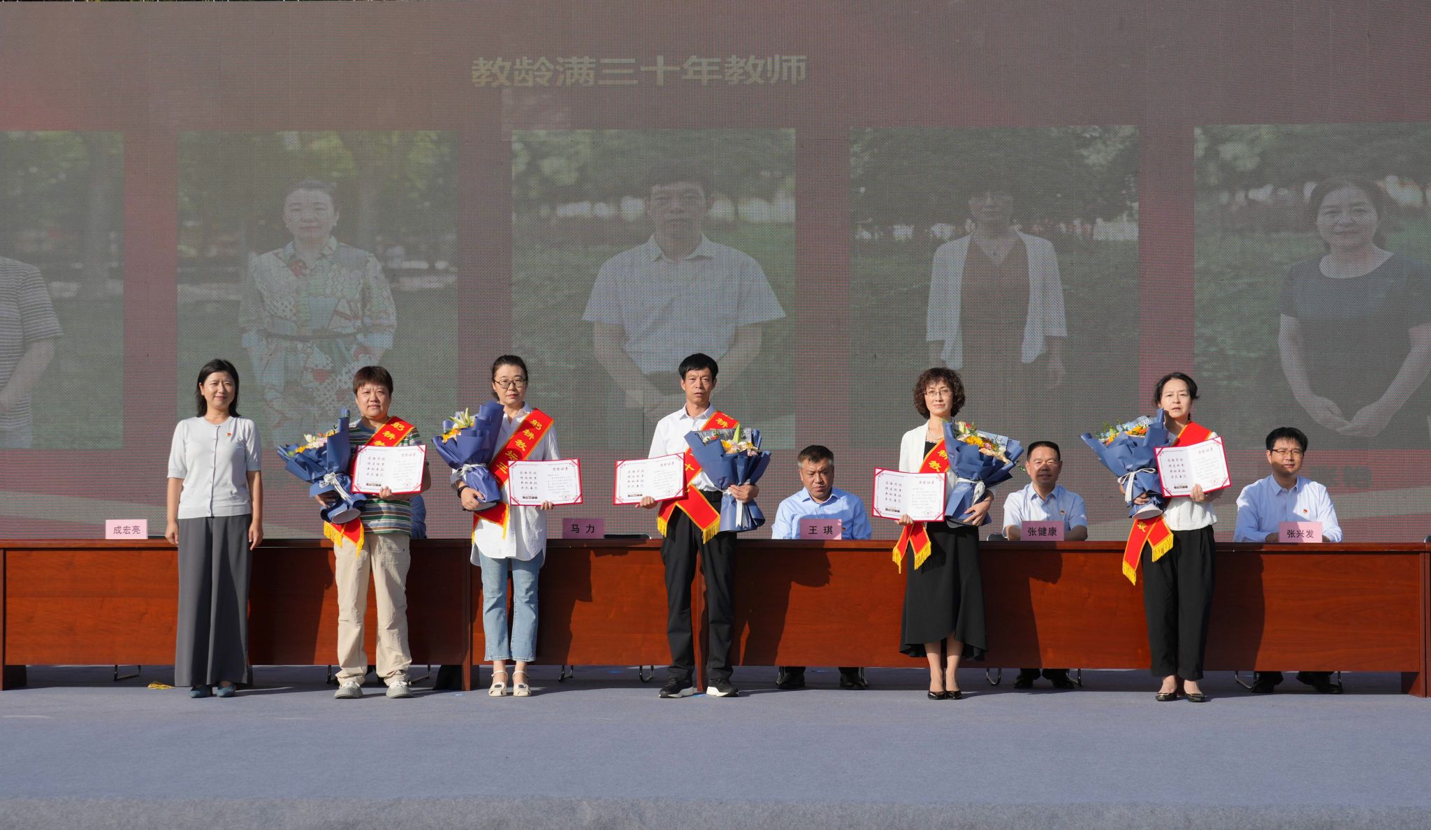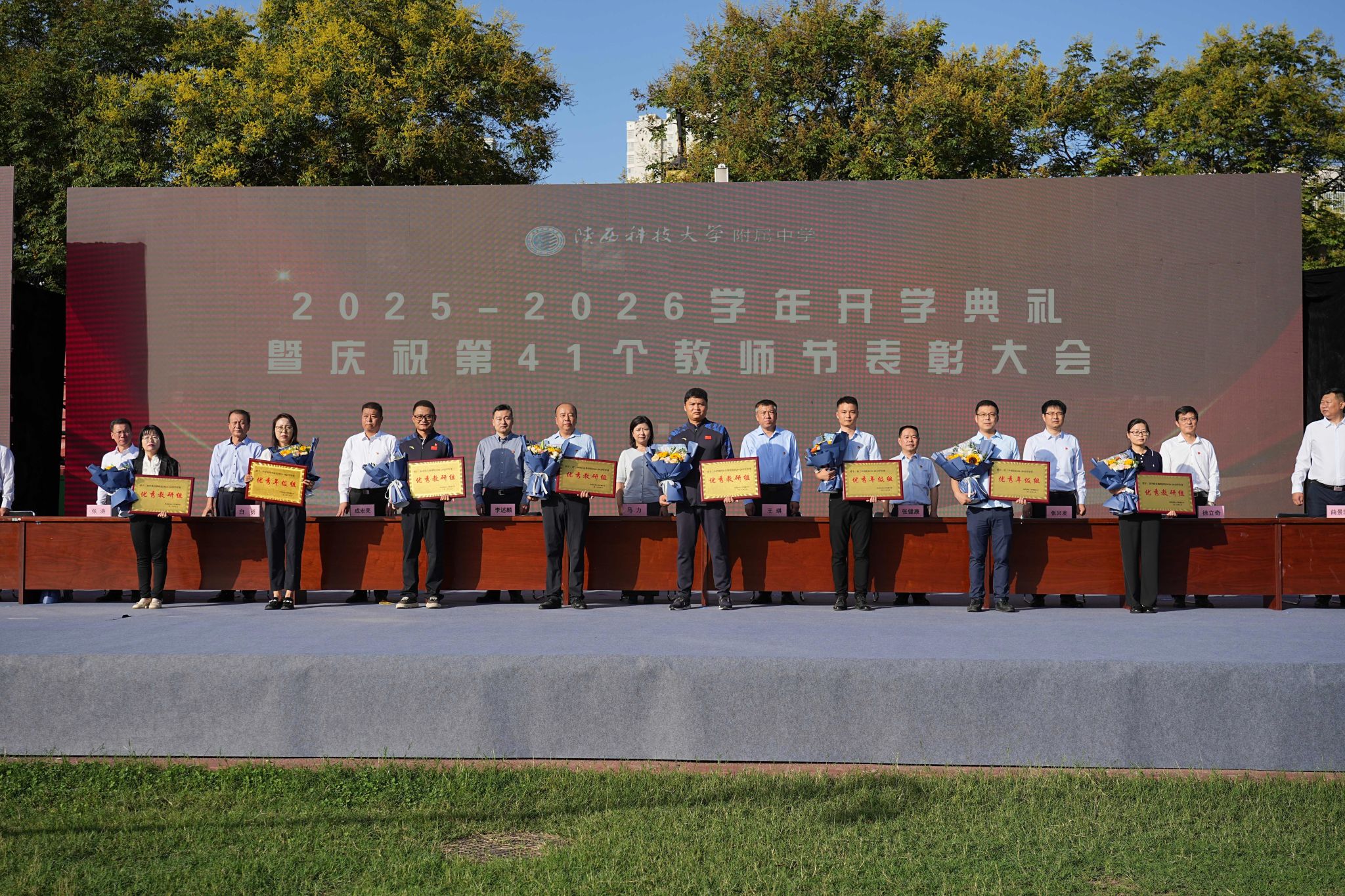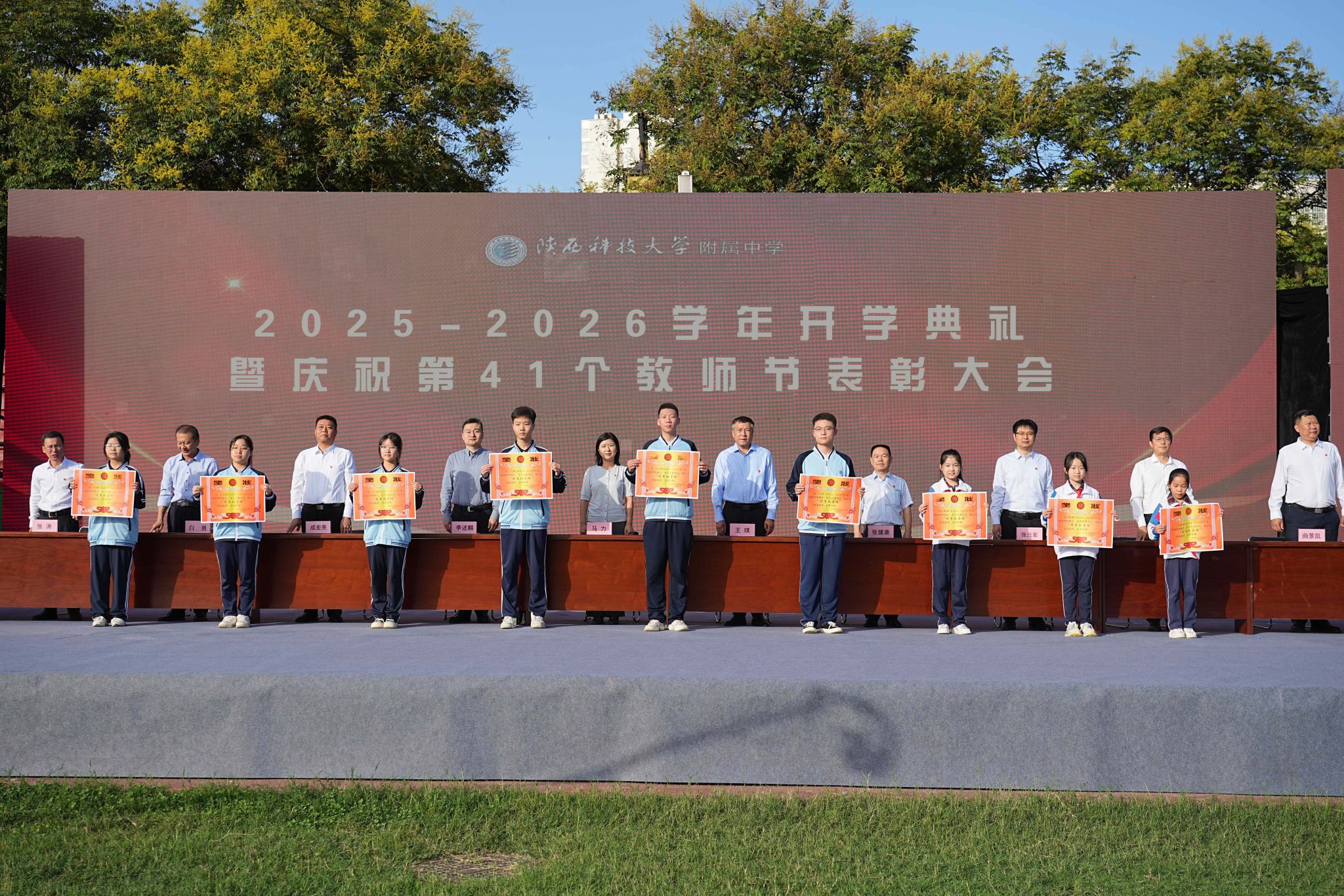 9月8日上午,陜西科技大學(xué)附屬中學(xué)2025—2026學(xué)年開(kāi)學(xué)典禮暨慶祝第41個(gè)教師節(jié)表彰大會(huì)在田徑場(chǎng)舉行。陜西科技大學(xué)副校長(zhǎng)馬力為教齡滿三十年教師頒發(fā)榮譽(yù)證書(shū)。附屬中學(xué)黨委書(shū)記王琪、校長(zhǎng)李述麟,黨委副書(shū)記、副校長(zhǎng)張健康,黨委委員張興發(fā),各部門(mén)負(fù)責(zé)人及全體師生參加大會(huì)。大會(huì)由附屬中學(xué)校長(zhǎng)助理成宏亮主持。