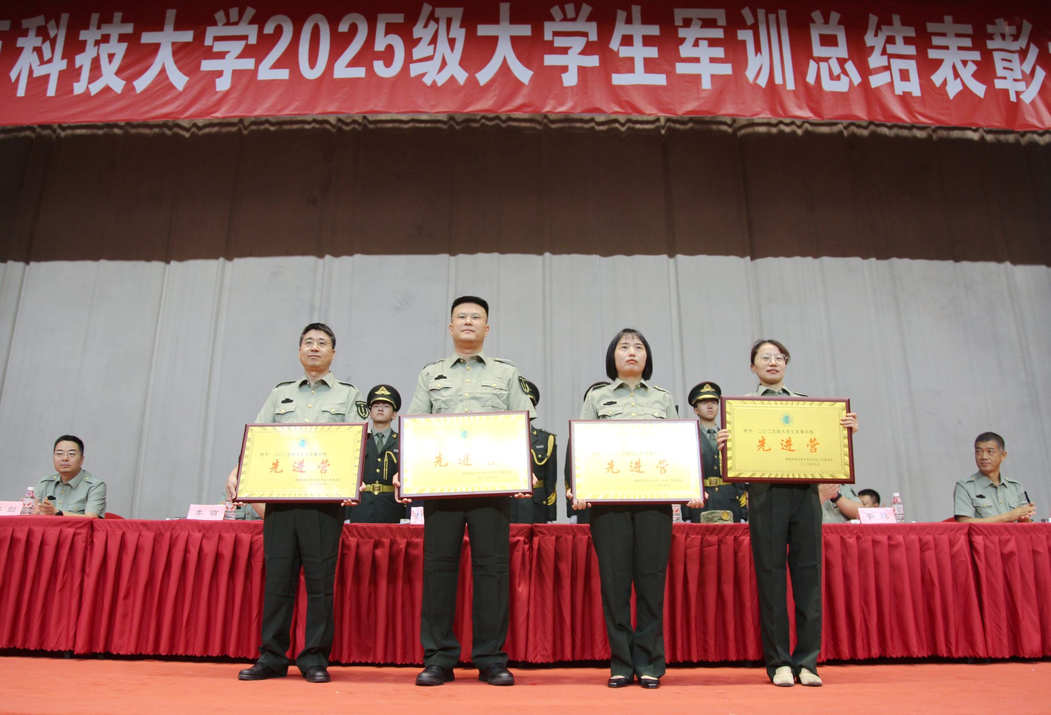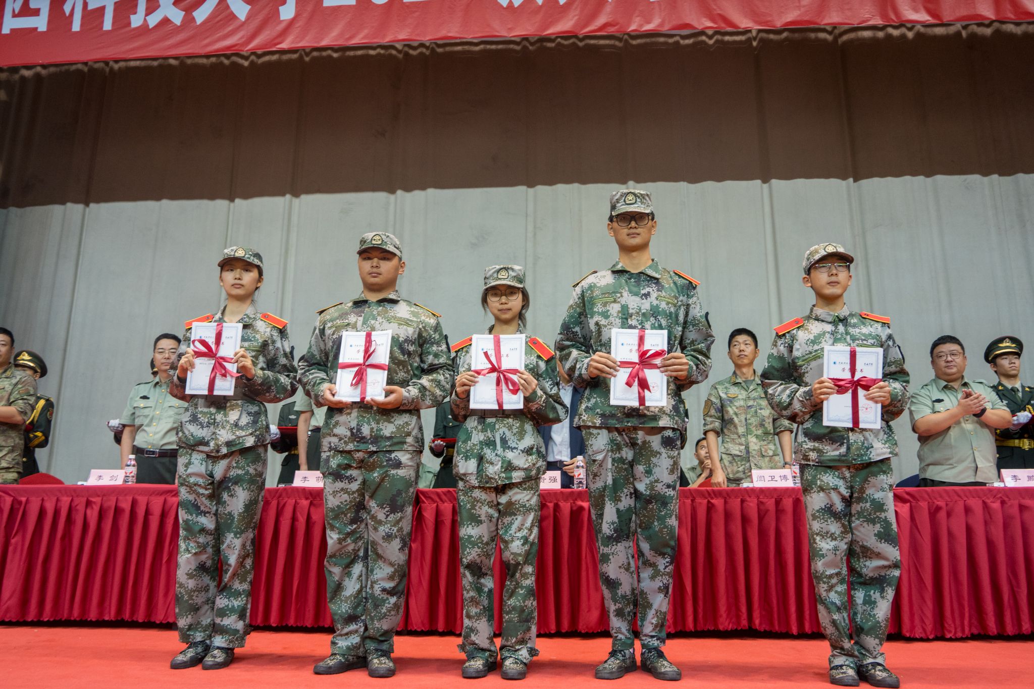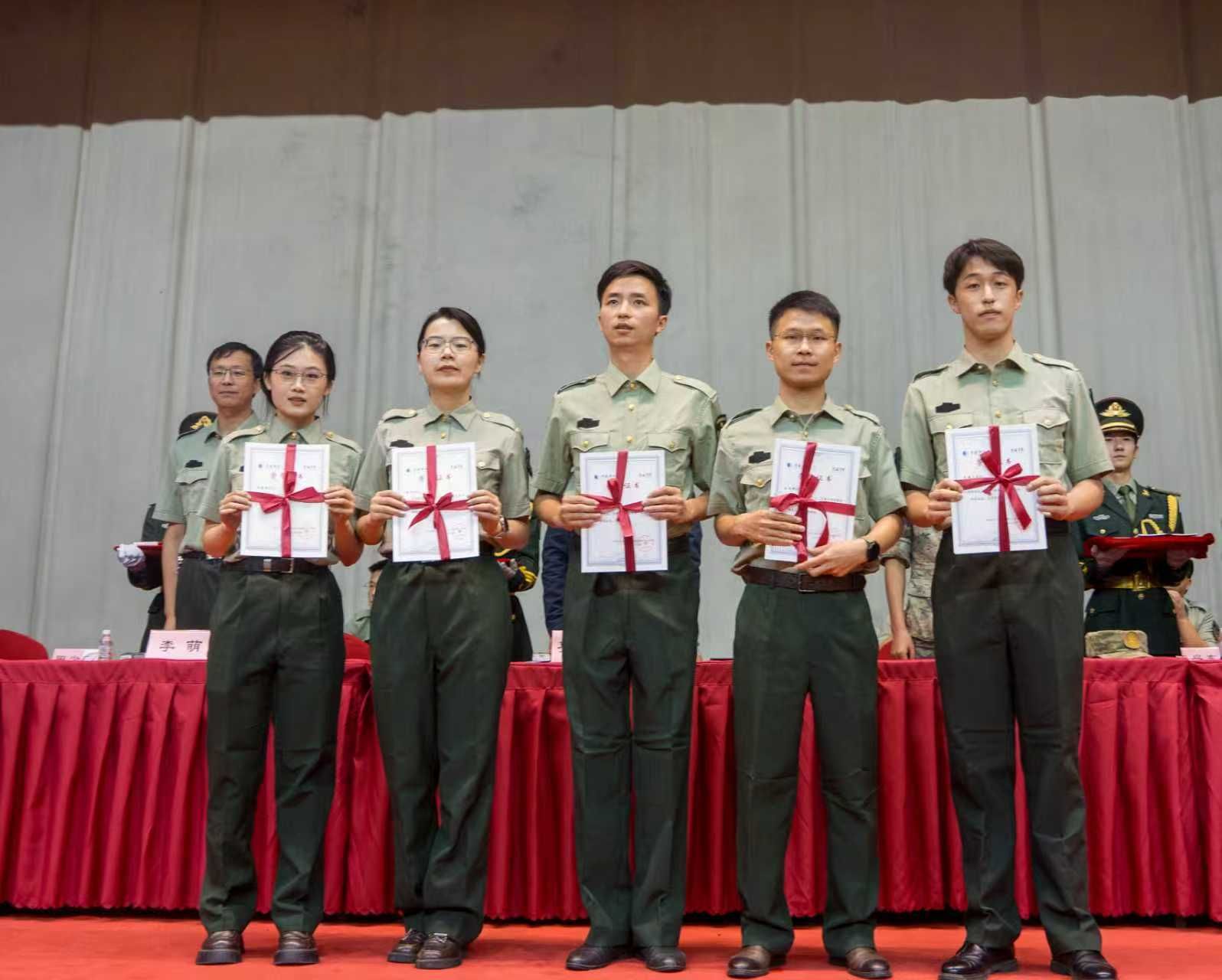 與會領(lǐng)導(dǎo)為受表彰的先進集體和個人頒獎,十一營、十四營、九營、一營榮獲先進營稱號;一營一連等14個連隊榮獲先進連稱號;李恩等14名同志榮獲優(yōu)秀指導(dǎo)員稱號;趙藝菲等238名同學(xué)榮獲優(yōu)秀學(xué)員稱號。
