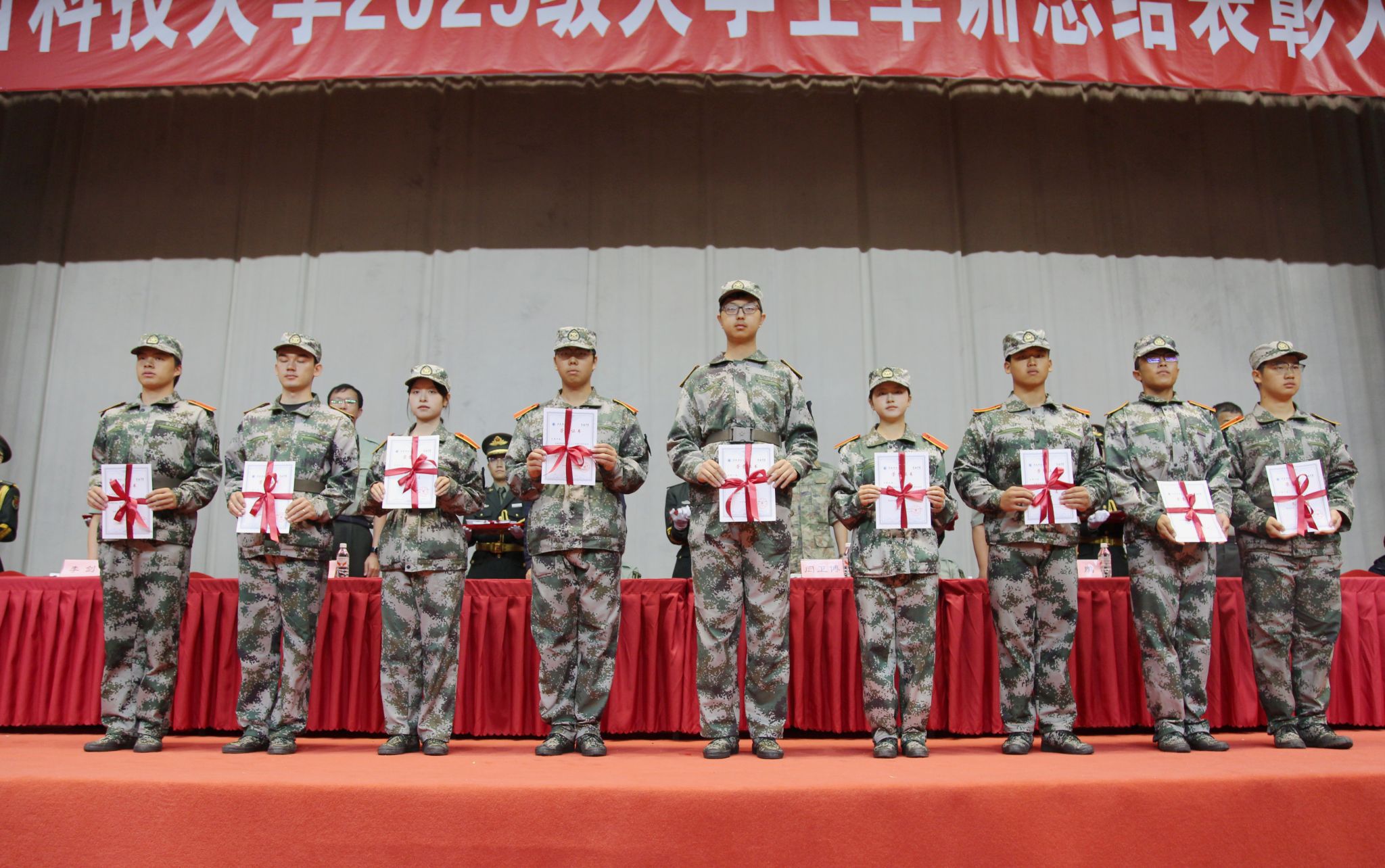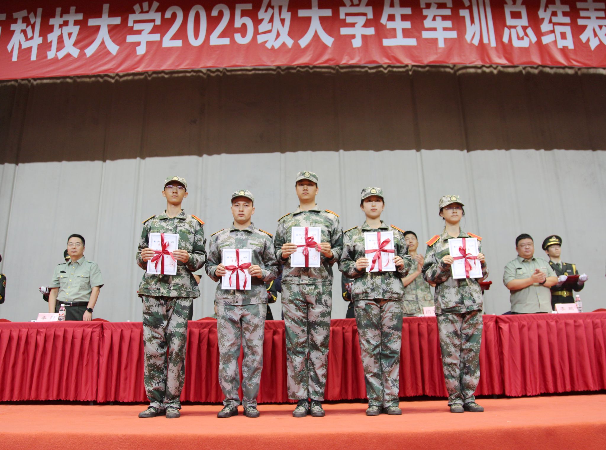 閆衛(wèi)博宣讀了《關(guān)于表彰2025級大學(xué)生軍事訓(xùn)練先進集體及先進個人的決定》,并寄語全體同學(xué)在今后的工作學(xué)習(xí)中繼續(xù)保持軍訓(xùn)中養(yǎng)成的好習(xí)慣、好作風(fēng),不斷進取,開拓創(chuàng)新,讓軍人的氣質(zhì)、軍人的風(fēng)采伴隨終生。