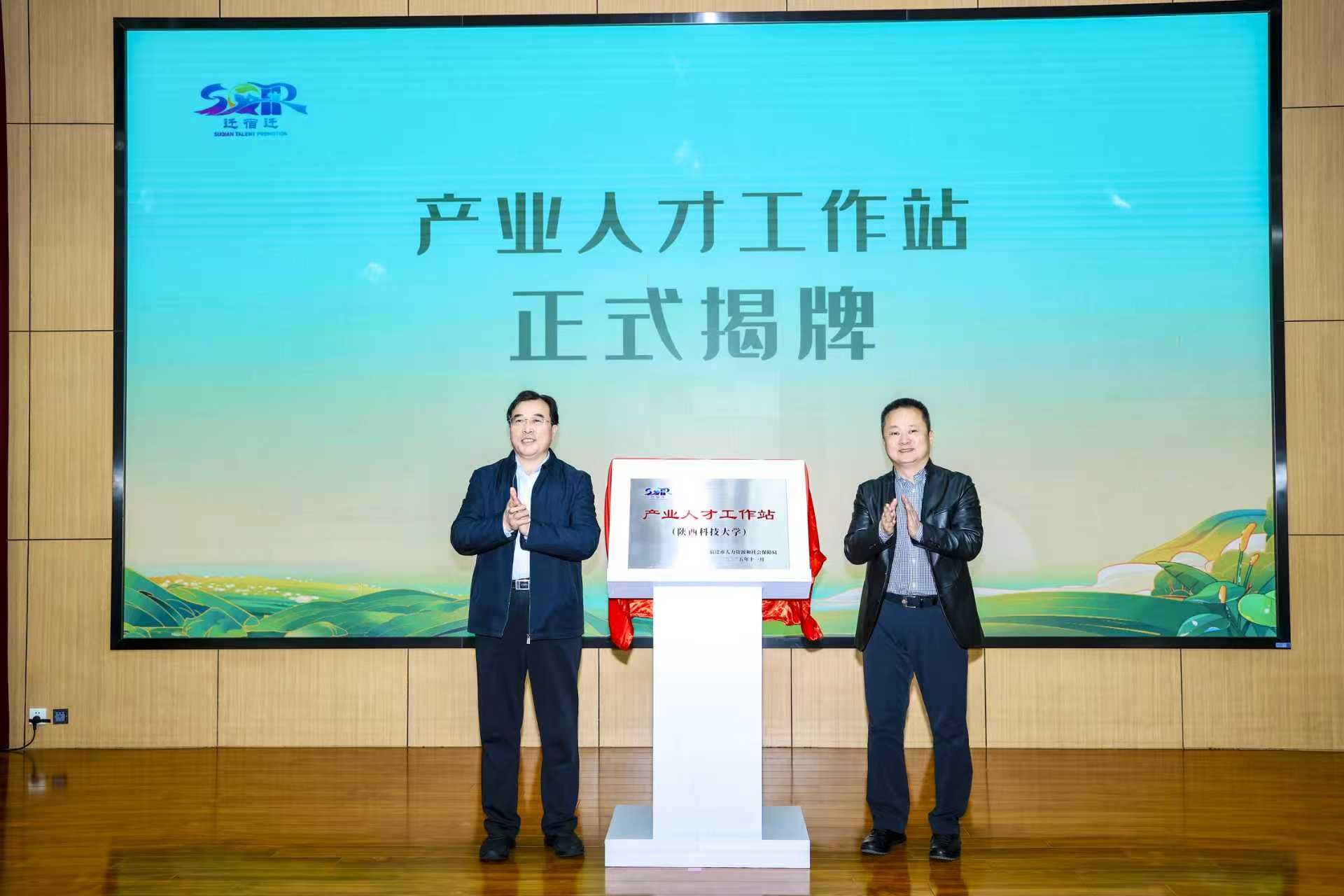 錢信松圍繞宿遷產(chǎn)業(yè)發(fā)展情況、人才科技政策進行了專題推介。他表示,宿遷與陜西科技大學合作基礎(chǔ)良好,校園招聘成果顯著,并誠摯發(fā)出邀請,歡迎更多優(yōu)秀學子加入宿遷,共創(chuàng)未來。在宿就業(yè)校友代表分享成長經(jīng)驗。李學軍與錢信松共同為“宿遷產(chǎn)業(yè)人才工作站”揭牌,標志著校地合作邁向機制化、常態(tài)化新階段。
