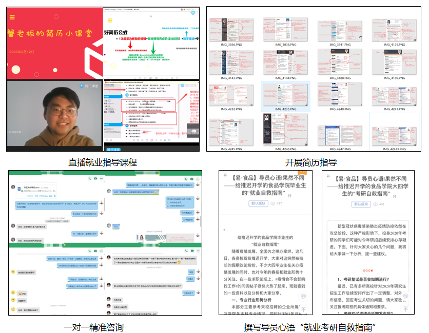 “大家好,我是‘蟹老板’,歡迎來到簡歷門診直播小課堂,今天主題是面對就業(yè)新形勢,如何讓自己的簡歷脫穎而出。”2月12日,食品學院輔導員謝果在家進行了他第一次網(wǎng)絡直播,這也是他“就業(yè)戰(zhàn)疫系列”的首播,2個小時直播,125名學生同時觀看。結(jié)合指導過的12份典型簡歷,他分別從專業(yè)就業(yè)形勢、就業(yè)考研簡歷異同和好簡歷公式三個角度,展開了一場生動幽默的就業(yè)指導直播課,學生們紛紛留言“賺到了!”、“坐等下一次課程”。謝果說,當前網(wǎng)絡招聘日趨主流,指導畢業(yè)生如何用簡歷充分展示自己將是關(guān)鍵。本次直播課程主要是盤點并解答近期簡歷門診中的共性問題,以簡歷問診為突破口開展就業(yè)咨詢,為學生打造“一人一特色”的就業(yè)潛力開發(fā),讓他們主動思考自己、不斷完善簡歷、積極投身求職。從寒假開始,他每日開展“簡歷門診”,截止目前已完成就業(yè)咨詢89人次。