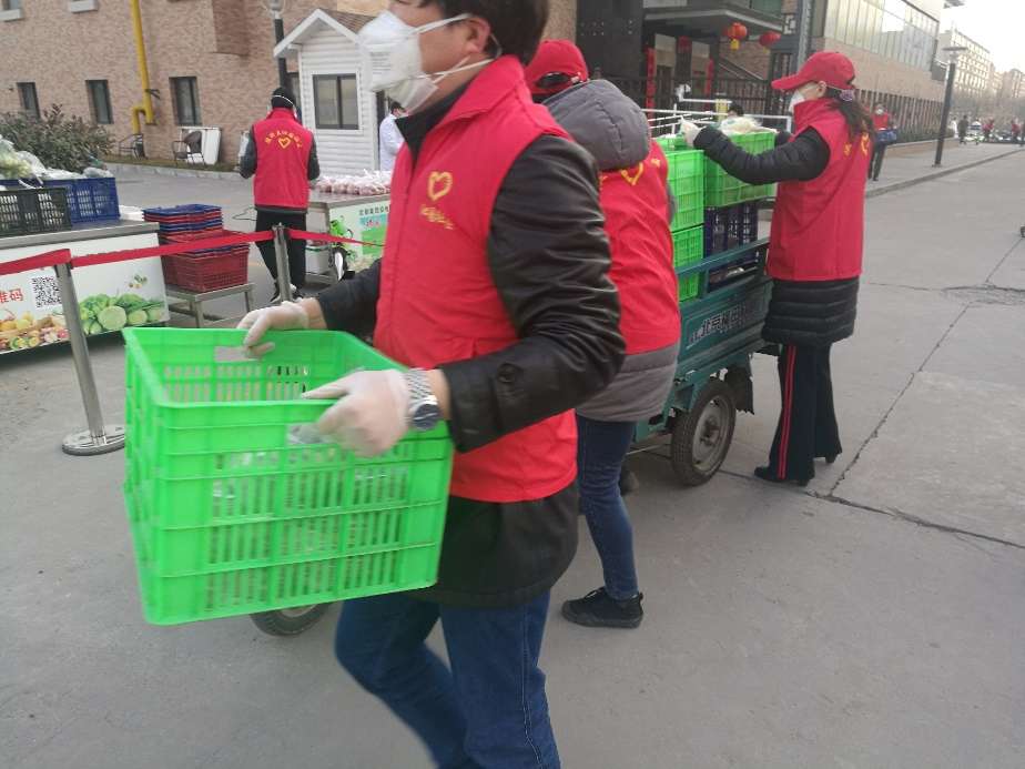 發(fā)出倡議后,居民積極響應(yīng)報名參加。2月20日清晨8點,第一批志愿者在沁園社區(qū)集合,社區(qū)主任王先鋒帶隊前往后勤蔬菜供應(yīng)點,志愿者們搬運蔬菜、整理分類,做好居民購菜前的準(zhǔn)備工作。