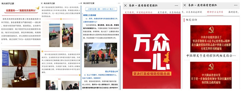 材料科學(xué)與工程學(xué)院易班工作站對(duì)學(xué)院參與一線疫情防護(hù)工作的7位同學(xué)進(jìn)行了線上采訪報(bào)道,樹(shù)立青年榜樣,進(jìn)行輿論宣傳;經(jīng)濟(jì)與管理學(xué)院易班工作站為發(fā)揮學(xué)生黨員在抗擊疫情中的模范帶頭作用,搭建線上輕應(yīng)用“疫情面前黨旗紅”,引導(dǎo)黨員提高政治站位,強(qiáng)化黨員意識(shí),主動(dòng)發(fā)揮黨員作用,堅(jiān)定打贏疫情攻堅(jiān)戰(zhàn)的信心和決心。