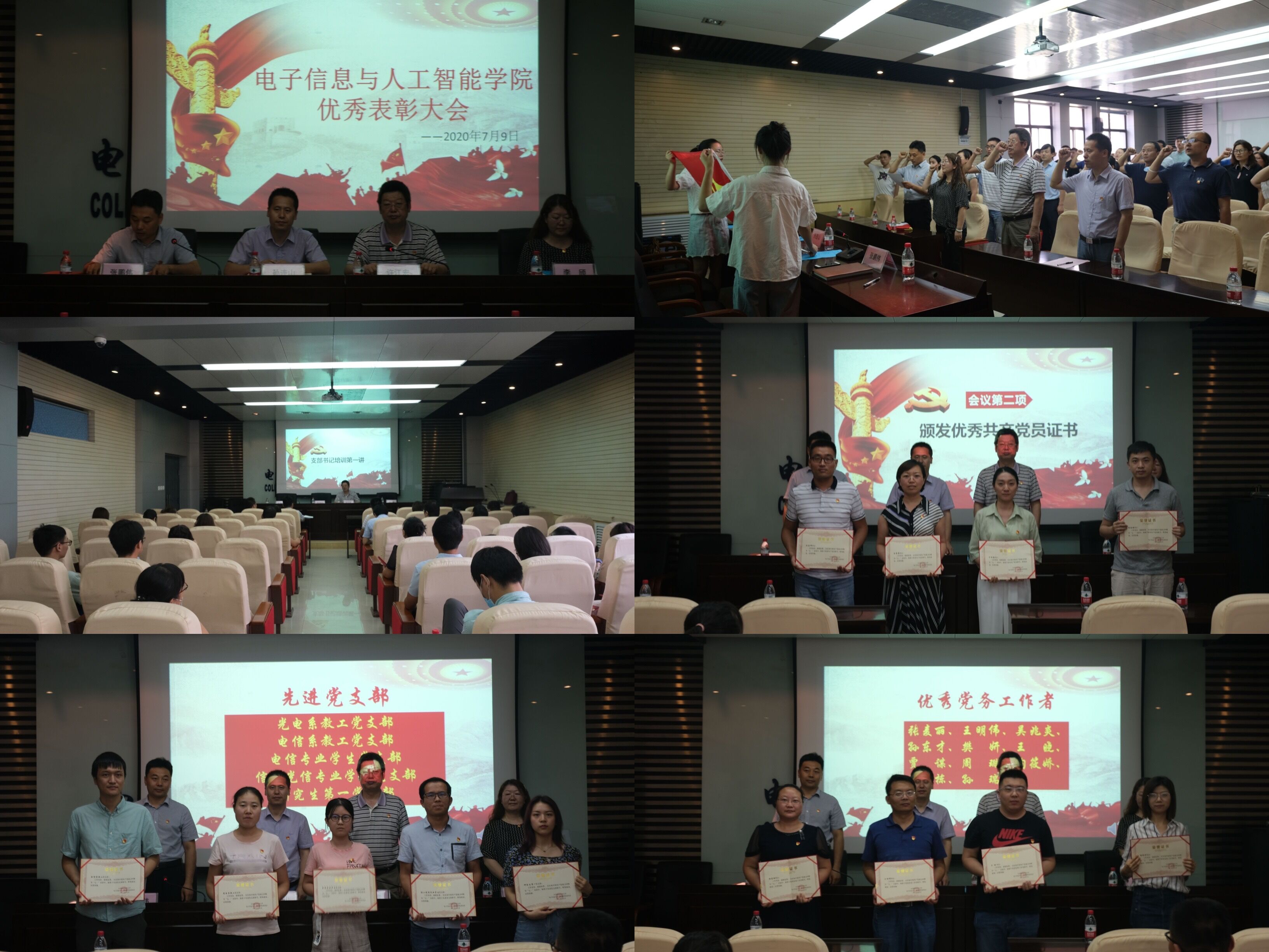 做好黨內(nèi)評優(yōu)表彰,創(chuàng)優(yōu)爭先。為進(jìn)一步激勵學(xué)院各黨支部和廣大黨員砥礪奮斗,激發(fā)廣大黨員解放思想、聚力奮進(jìn)、創(chuàng)先爭優(yōu)的熱情。7月9日,電智學(xué)院召開黨內(nèi)評優(yōu)表彰大會,授予任喜偉等16名同志“優(yōu)秀共產(chǎn)黨員”稱號;授予張麥麗等11名同志“優(yōu)秀黨務(wù)工作者”稱號;授予光電系教工黨支部等5個黨支部“先進(jìn)黨支部”稱號。