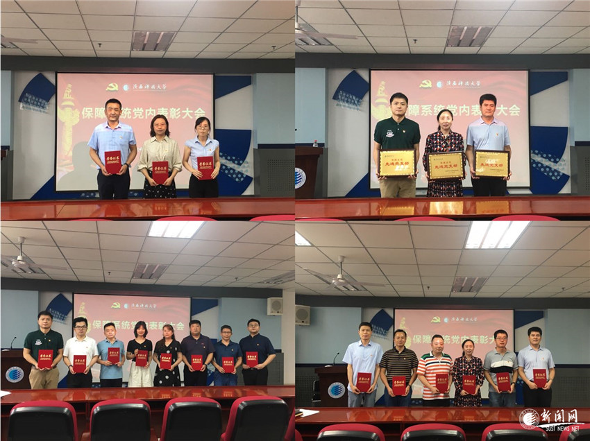 苗曉潔宣讀了《中共陜西科技大學保障系統(tǒng)委員會關(guān)于表彰先進基層黨支部、優(yōu)秀共產(chǎn)黨員、優(yōu)秀黨務(wù)工作者的決定》。與會領(lǐng)導為受表彰的先進基層黨支部、優(yōu)秀共產(chǎn)黨員、優(yōu)秀黨務(wù)工作者頒發(fā)榮譽證書。后勤三支部黨員樊虎杰、學工部黨支部組織委員李抗分別代表受到表彰的優(yōu)秀共產(chǎn)黨員及優(yōu)秀黨務(wù)工作者發(fā)言。