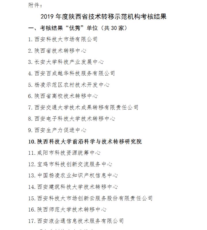陜西省科學(xué)技術(shù)廳關(guān)于公布2019年度陜西省技術(shù)轉(zhuǎn)移示范機構(gòu)考核結(jié)果的通知:http://kjt.shaanxi.gov.cn/kjzx/tzgg/189053.html