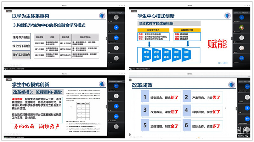 會(huì)議包含四個(gè)主題報(bào)告,由來(lái)自西北大學(xué)、電子科技大學(xué)、北京林業(yè)大學(xué)和陜西科技大學(xué)的4位一線教師分享了各校的課程改革經(jīng)驗(yàn)。孫連山介紹了我校工程教育專(zhuān)業(yè)認(rèn)證的總體情況,從工程教育現(xiàn)狀和問(wèn)題、專(zhuān)業(yè)認(rèn)證的核心理念、OBE導(dǎo)向的課程改革、改革成效與未來(lái)工作等四個(gè)方面詳細(xì)介紹了我校工程教育專(zhuān)業(yè)認(rèn)證背景下的數(shù)據(jù)結(jié)構(gòu)課程混合式教學(xué)改革與實(shí)踐工作。西北大學(xué)耿國(guó)華從“雙萬(wàn)計(jì)劃”和四新建設(shè)談起,強(qiáng)調(diào)了數(shù)據(jù)結(jié)構(gòu)課程資源建設(shè)在數(shù)據(jù)結(jié)構(gòu)課程改革中的重要作用,并詳細(xì)介紹了西北大學(xué)數(shù)據(jù)結(jié)構(gòu)課程組的課程資源建設(shè)實(shí)踐和成果;北京林業(yè)大學(xué)李冬梅介紹了以學(xué)生為中心,以問(wèn)題為導(dǎo)向的數(shù)據(jù)結(jié)構(gòu)教學(xué)模式;電子科技大學(xué)湯羽從課程融合與在線能力測(cè)評(píng)等兩個(gè)維度入手,介紹了電子科技大學(xué)在新工科背景下對(duì)傳統(tǒng)數(shù)據(jù)結(jié)構(gòu)課程的重構(gòu)方法和實(shí)踐經(jīng)驗(yàn)。