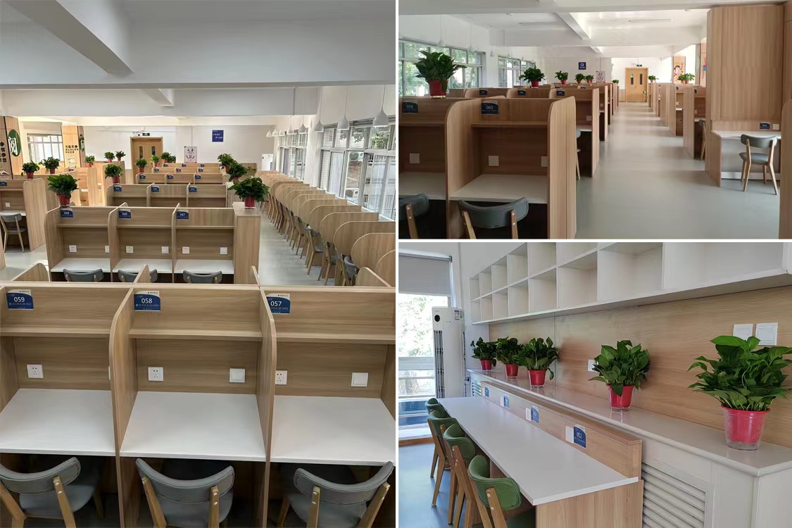 二、優(yōu)化公寓學(xué)習(xí)環(huán)境,提供溫馨精細(xì)服務(wù)。以“三三三”人才培養(yǎng)輸出目標(biāo)為導(dǎo)向,以改善學(xué)生學(xué)習(xí)環(huán)境為切入點(diǎn),在五公寓試點(diǎn)的基礎(chǔ)上推廣至一、四、六、七、八公寓的二樓考研自習(xí)室全部改造完工。環(huán)境升級(jí)后的自習(xí)室共有座位數(shù)508個(gè),每個(gè)座位安裝插座、臺(tái)燈,設(shè)置座位預(yù)約系統(tǒng),無(wú)線網(wǎng)絡(luò)全覆蓋,并配備大量綠植,自習(xí)室面貌煥然一新,極大地提升了公寓自習(xí)室的整體形象,最大化的滿足學(xué)生需要。