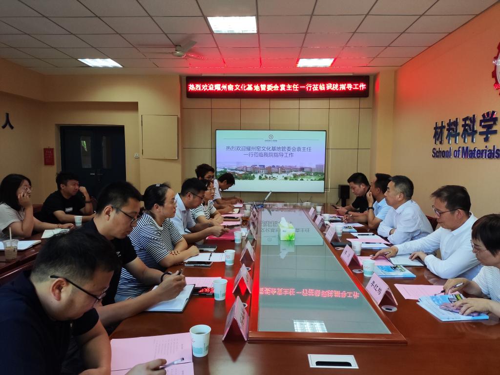 08月31日,耀州窯文化基地管委會主任袁虎迪、管委會招商局局長高德喜、管委會科協(xié)負責人李玥、陜西恒泰凱晟科技有限公司負責人丁凱等一行5人赴我校材料科學與工程學院(文物保護科學與技術(shù)學院)進行調(diào)研交流。材料學院黨委書記楊長安、副院長王卓及教師代表等人參加會議,會議由王卓主持。