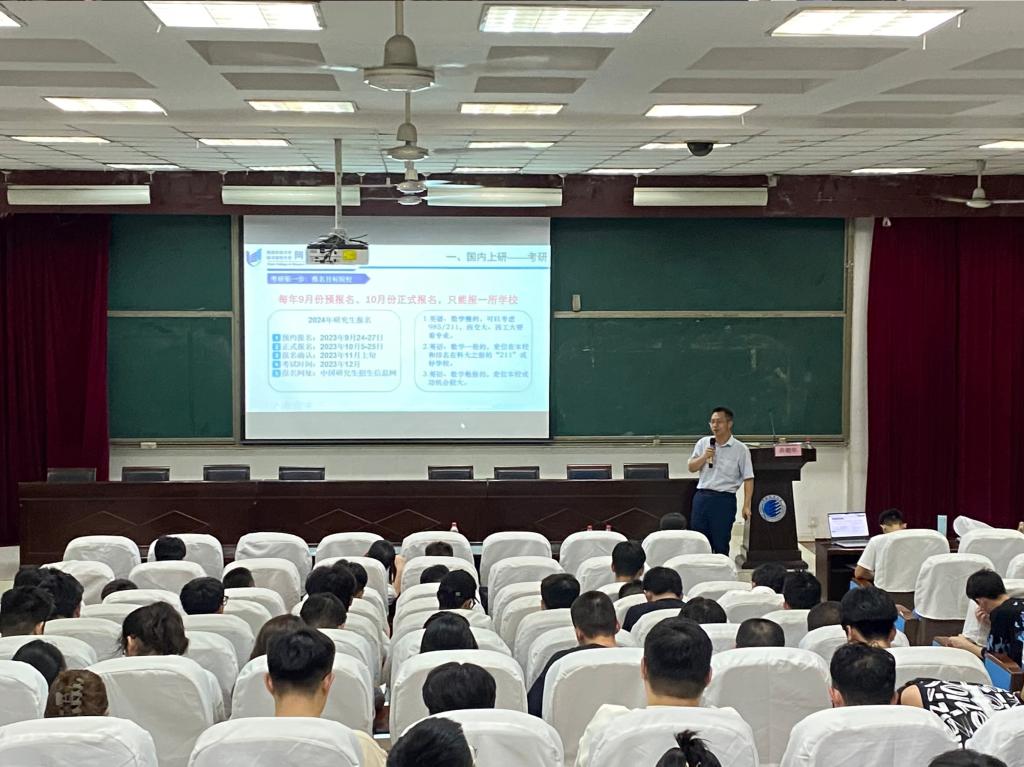 薛朝華首先介紹了當(dāng)前大背景下的就業(yè)形勢(shì)和學(xué)院首屆畢業(yè)生的就業(yè)情況。接著,分別就國(guó)內(nèi)考研、國(guó)外申研、就業(yè)展開分析,結(jié)合2023屆畢業(yè)生案例,在考研要點(diǎn)、申研文書寫作、簡(jiǎn)歷制作等方面為同學(xué)們提供了切實(shí)可行的建議。他希望,學(xué)生要統(tǒng)籌好大四階段課程學(xué)習(xí)及個(gè)人發(fā)展目標(biāo)準(zhǔn)備,做好時(shí)間管理及精力分配,并就大四階段教學(xué)管理及考核做有關(guān)強(qiáng)調(diào)說(shuō)明。他表示學(xué)院將全力支持學(xué)生升學(xué)就業(yè)工作,成為學(xué)生升學(xué)就業(yè)最堅(jiān)實(shí)的后盾。